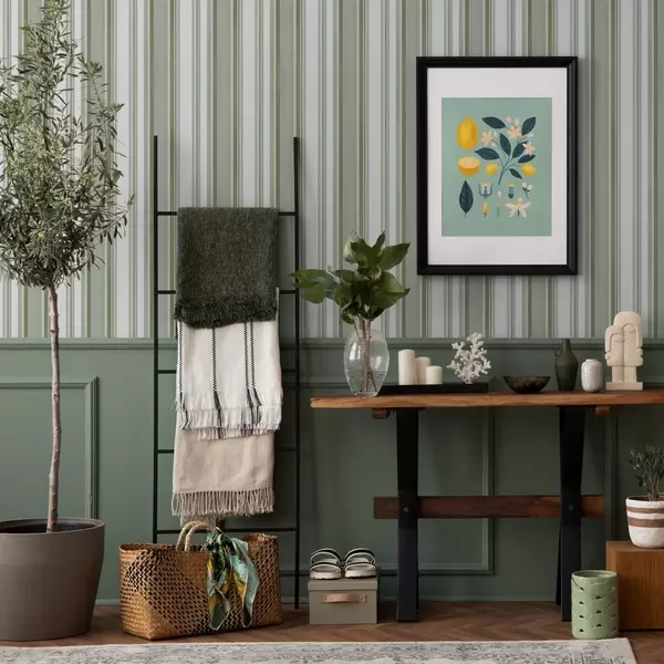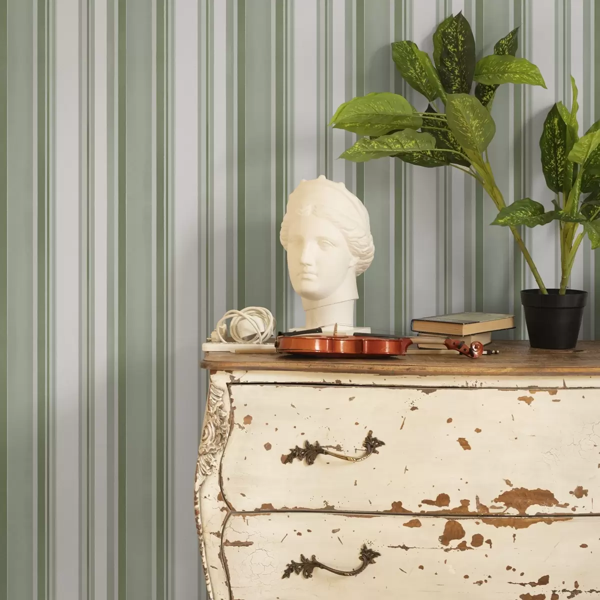 Тапет Зелени ивици с бели интервали и тънки линии Nr. a00526