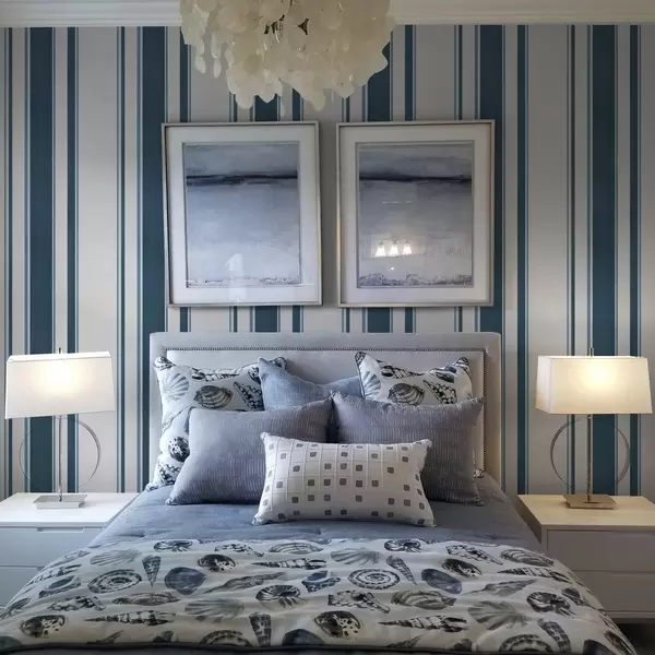 Тапет Сини и тюркоазени вертикални ивици на светъл фон Nr. a00528