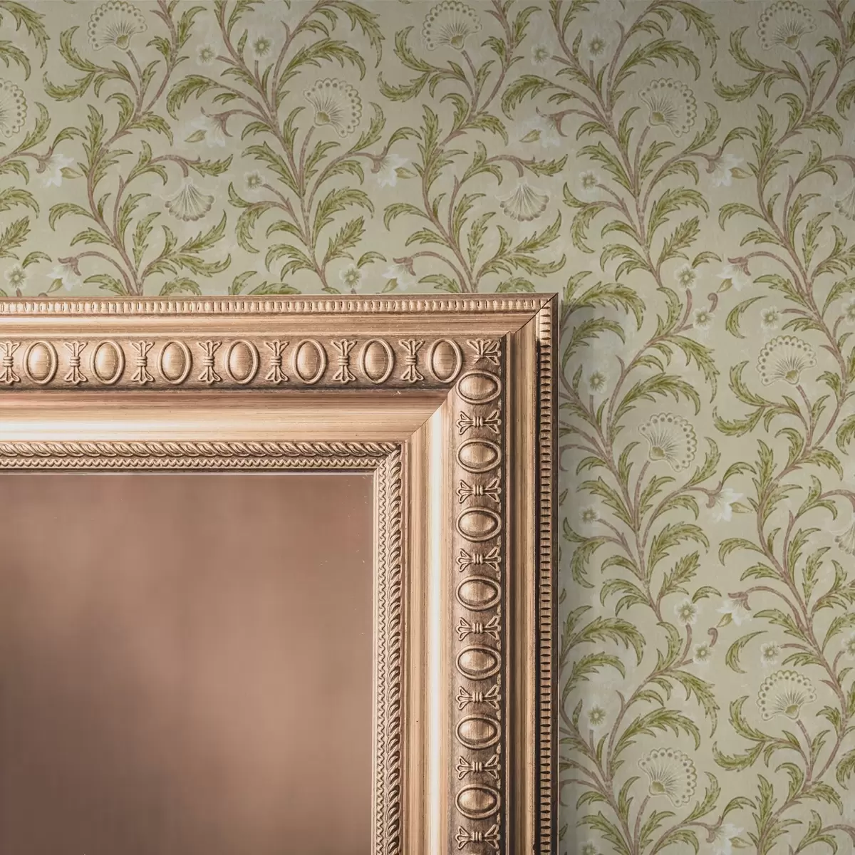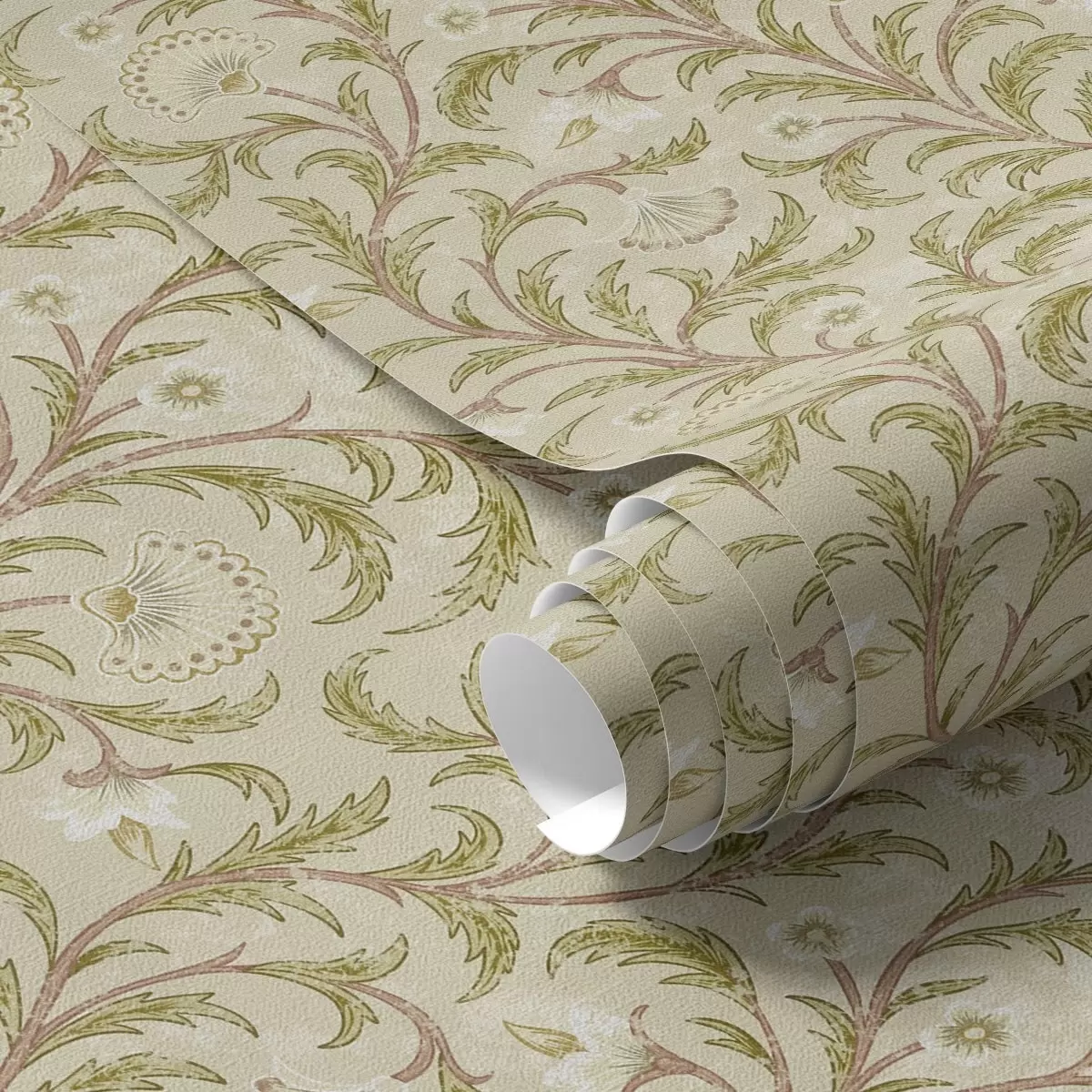 Тапет Винтидж орнамент с пергаменти и цветя, бежов и маслиненозелен Nr. a00574