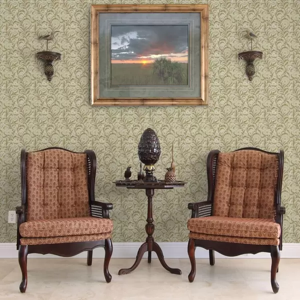 Тапет Винтидж орнамент с пергаменти и цветя, бежов и маслиненозелен Nr. a00574