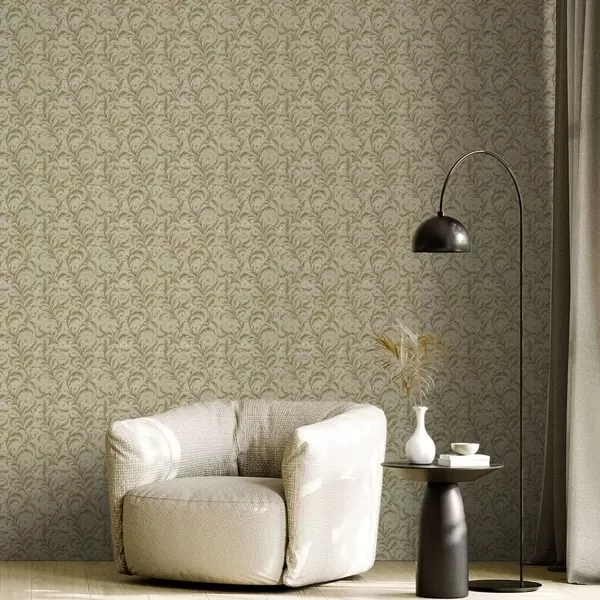 Тапет Винтидж орнамент с пергаменти и цветя, бежов и маслиненозелен Nr. a00574