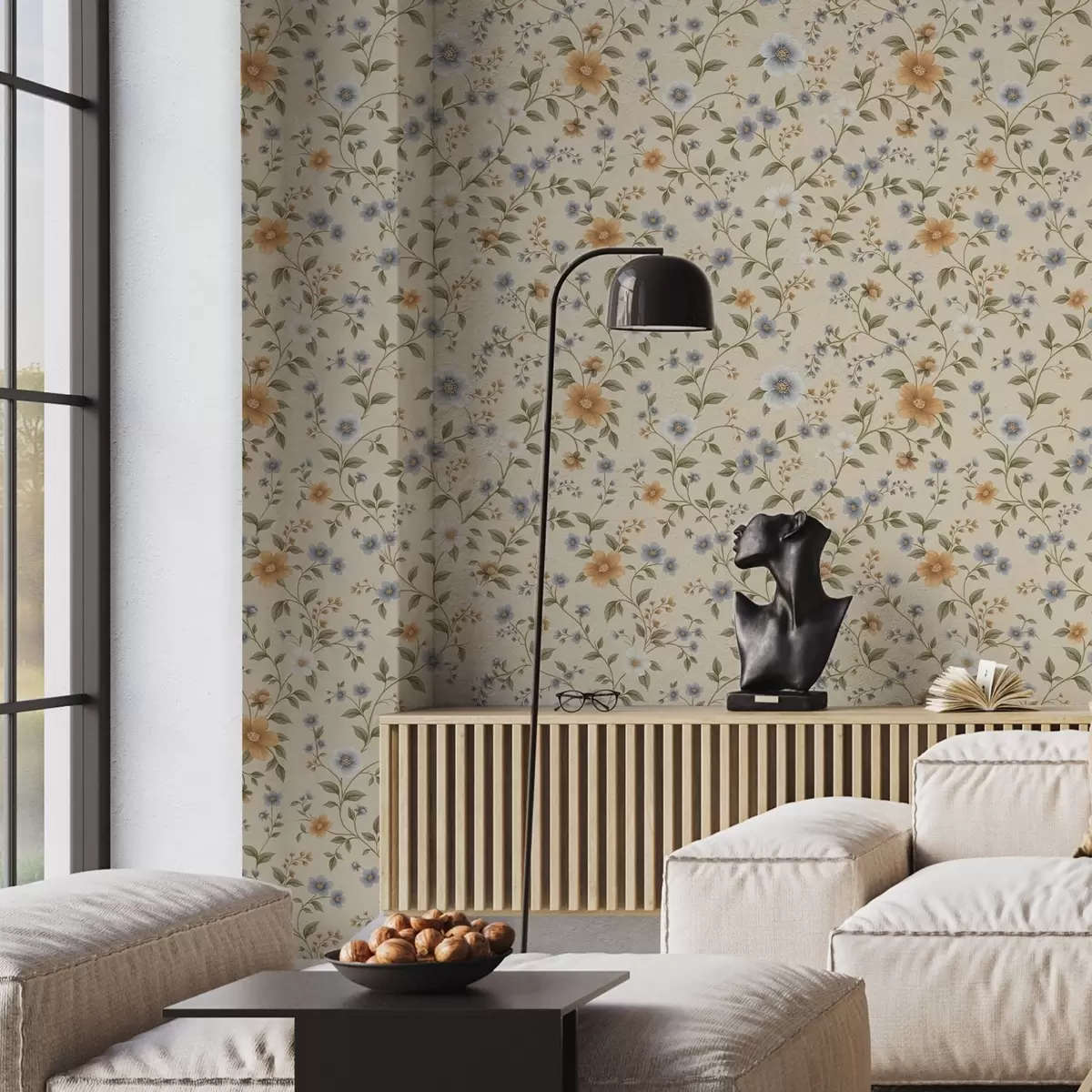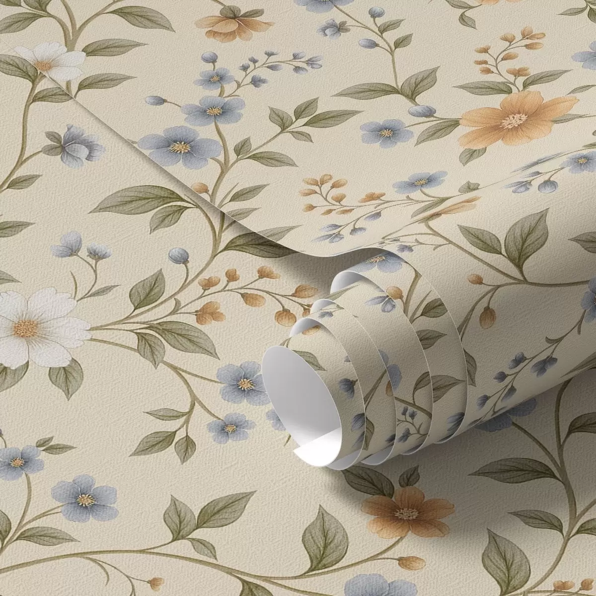 Тапет Цветни клонки със сини и прасковени цветя Nr. a00575