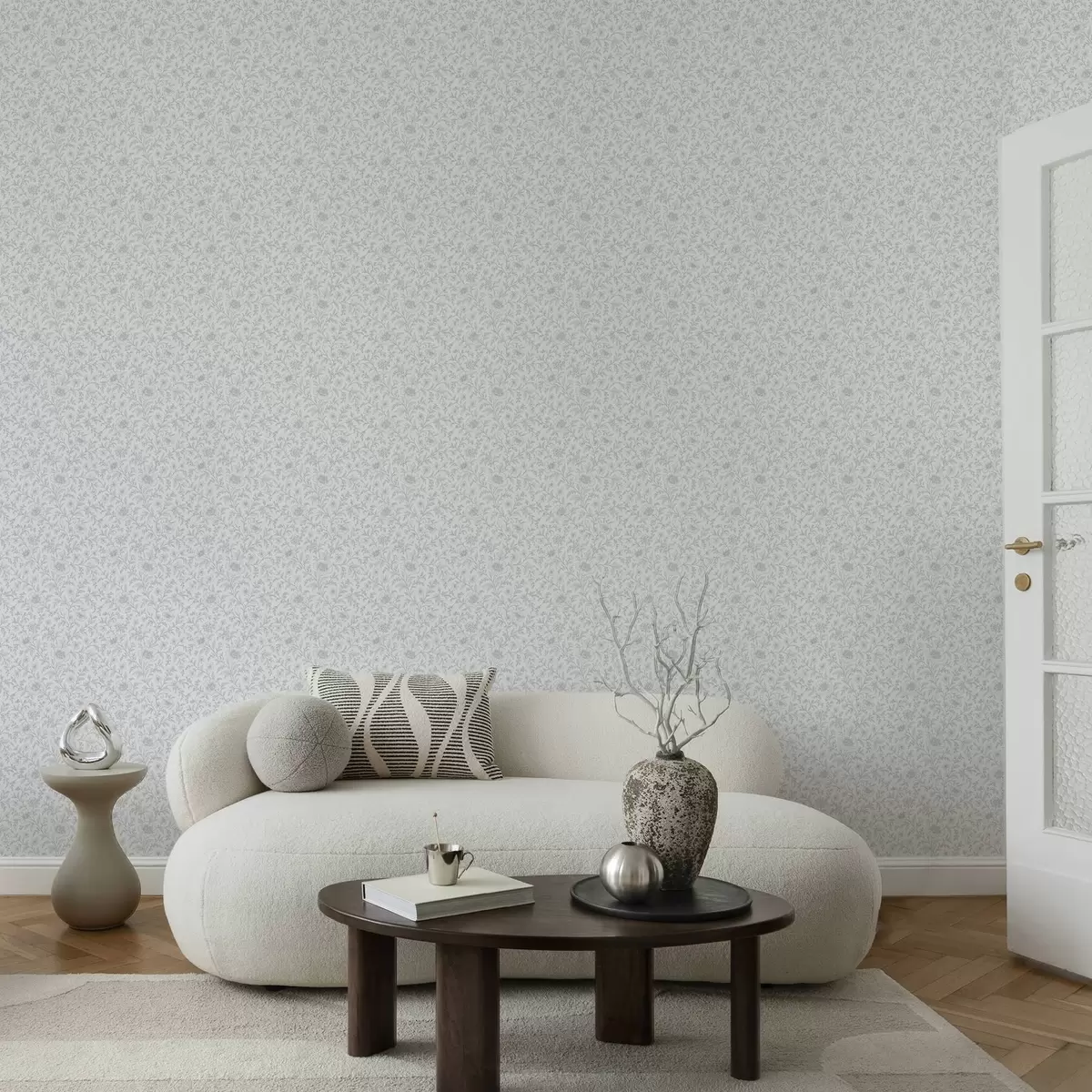 Тапет Фини сини линии, изобразяващи цветя, на кремаво-бял фон Nr. a00576
