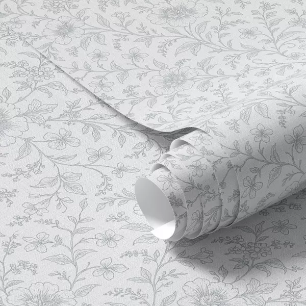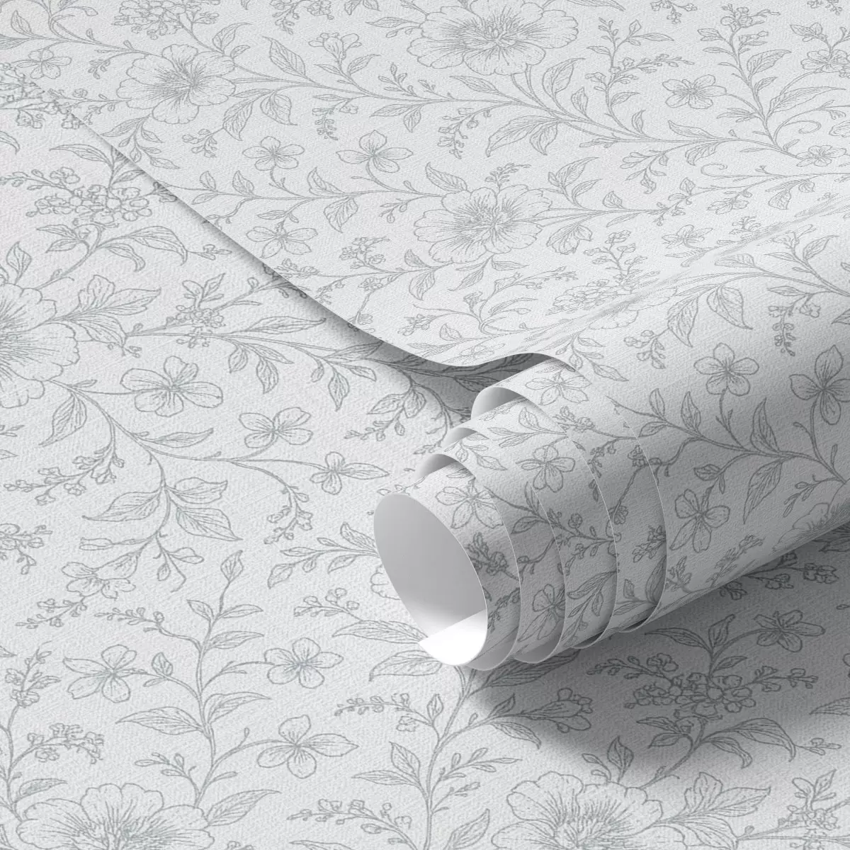 Тапет Фини сини линии, изобразяващи цветя, на кремаво-бял фон Nr. a00576
