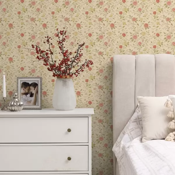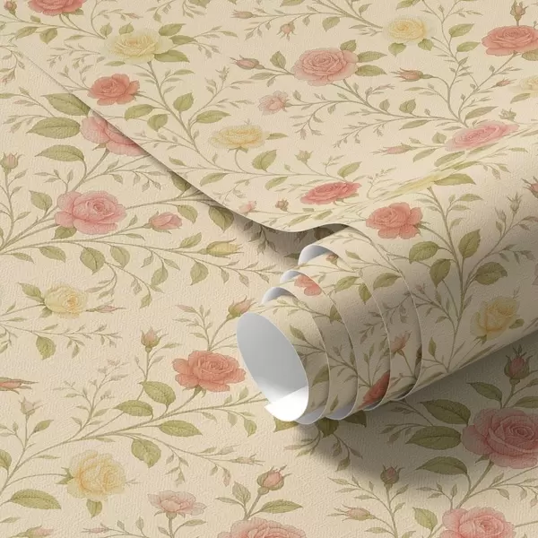 Тапет Ретро рози в прасковен и жълт цвят на кремав фон Nr. a00577