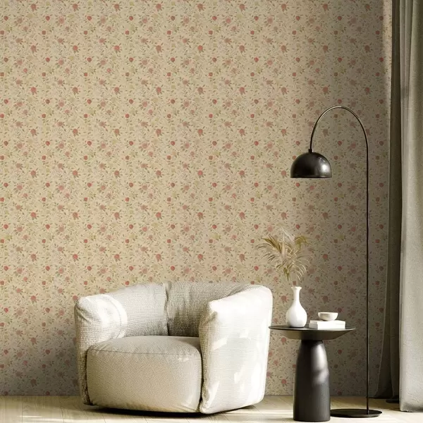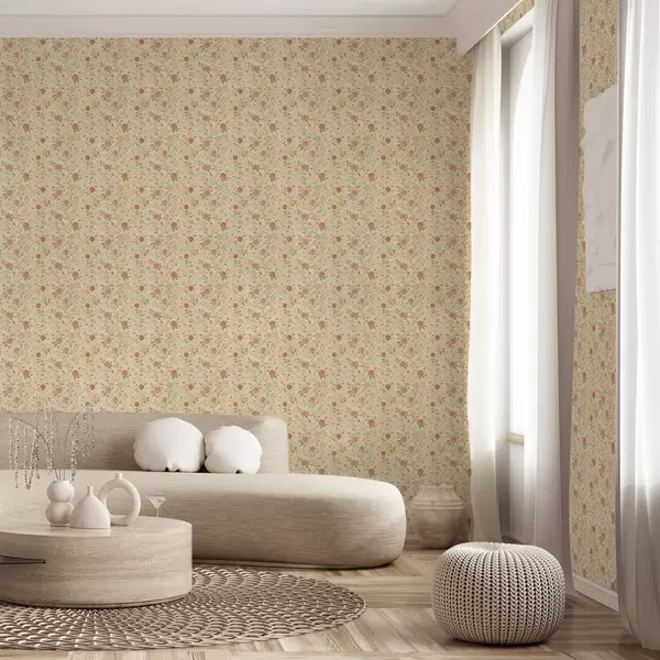 Тапет Ретро рози в прасковен и жълт цвят на кремав фон Nr. a00577
