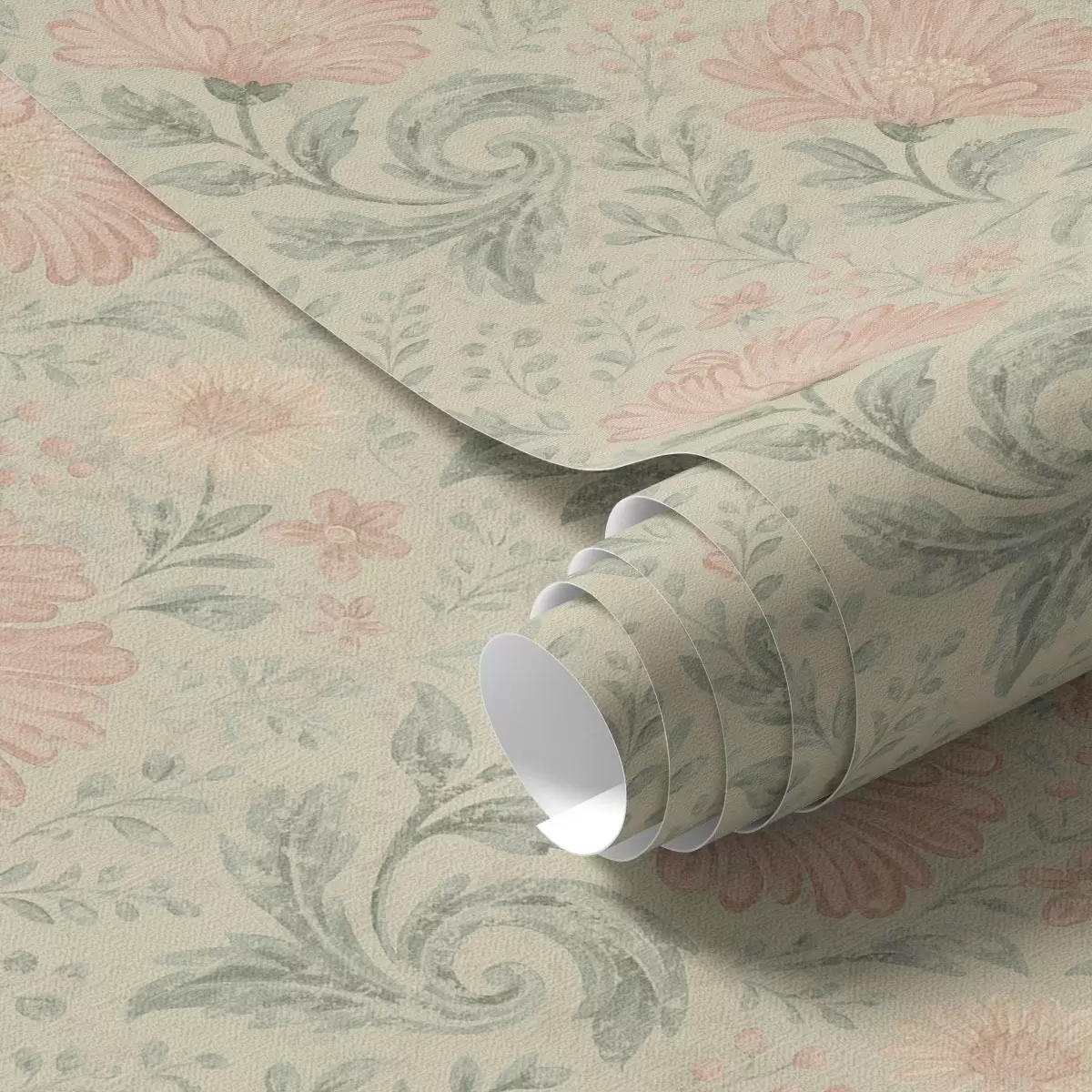 Тапет Ретро големи прасковени цветя с листа от градински чай Nr. a00580