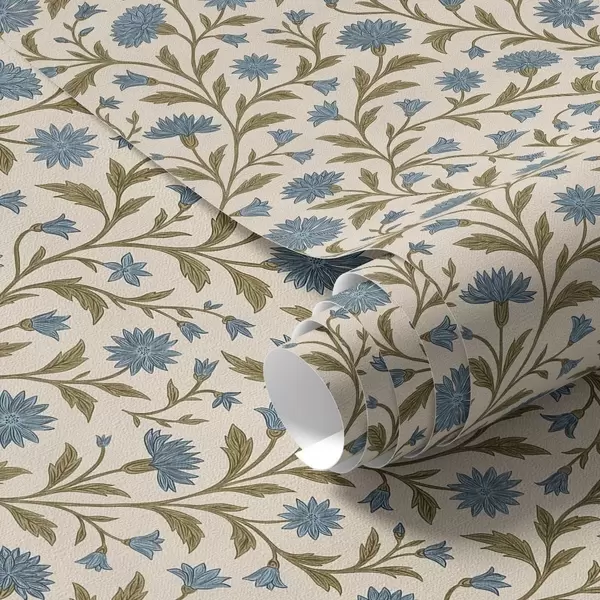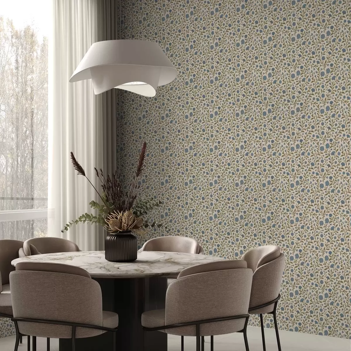 Тапет Сини метлички и кълнове на бежов фон Nr. a00588