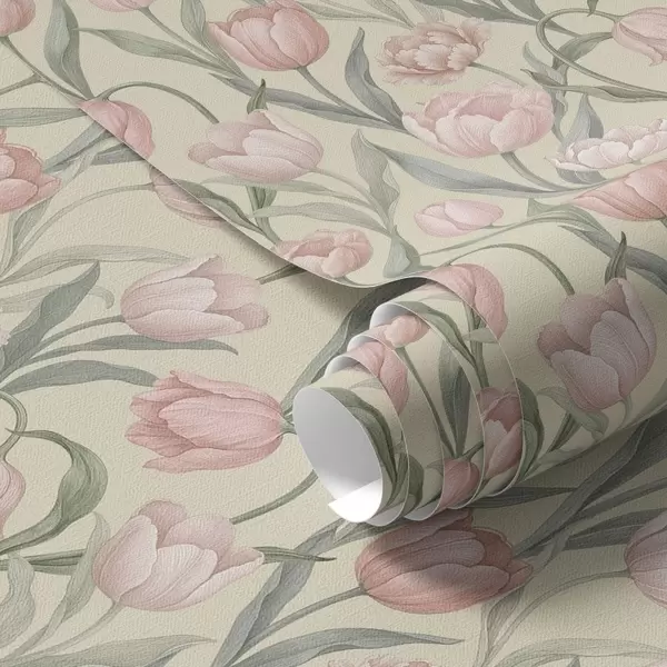 Тапет Нежни розови лалета на бледобежов фон Nr. a00589