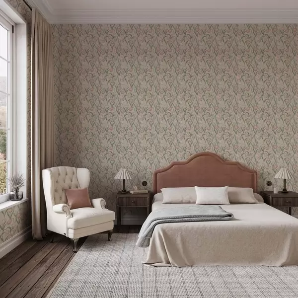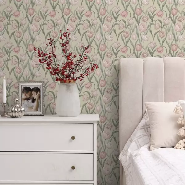 Тапет Нежни розови лалета на бледобежов фон Nr. a00589