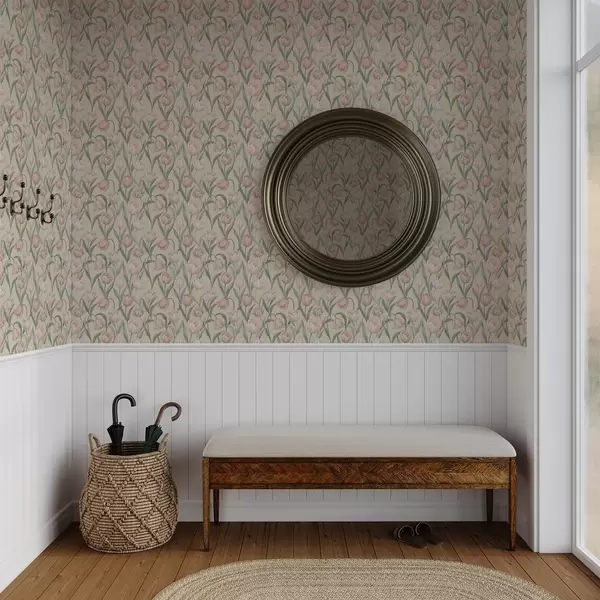 Тапет Нежни розови лалета на бледобежов фон Nr. a00589