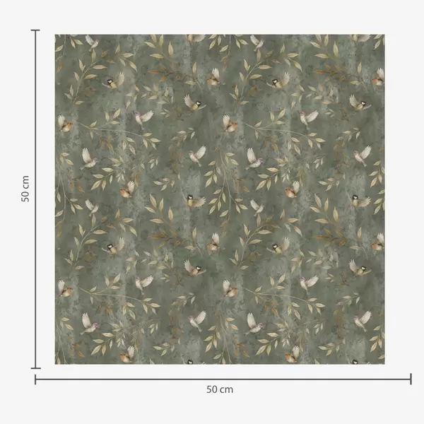 Тапет Птици в оранжева листа на тъмнозелен фон Nr. a00591
