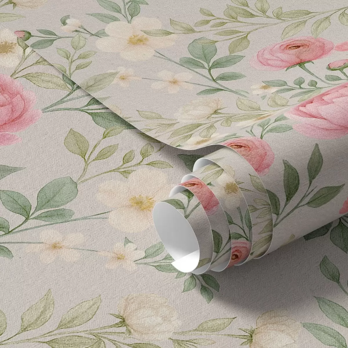 Тапет Акварелни божури и бели цветя върху сиво-бежов фон Nr. a00592