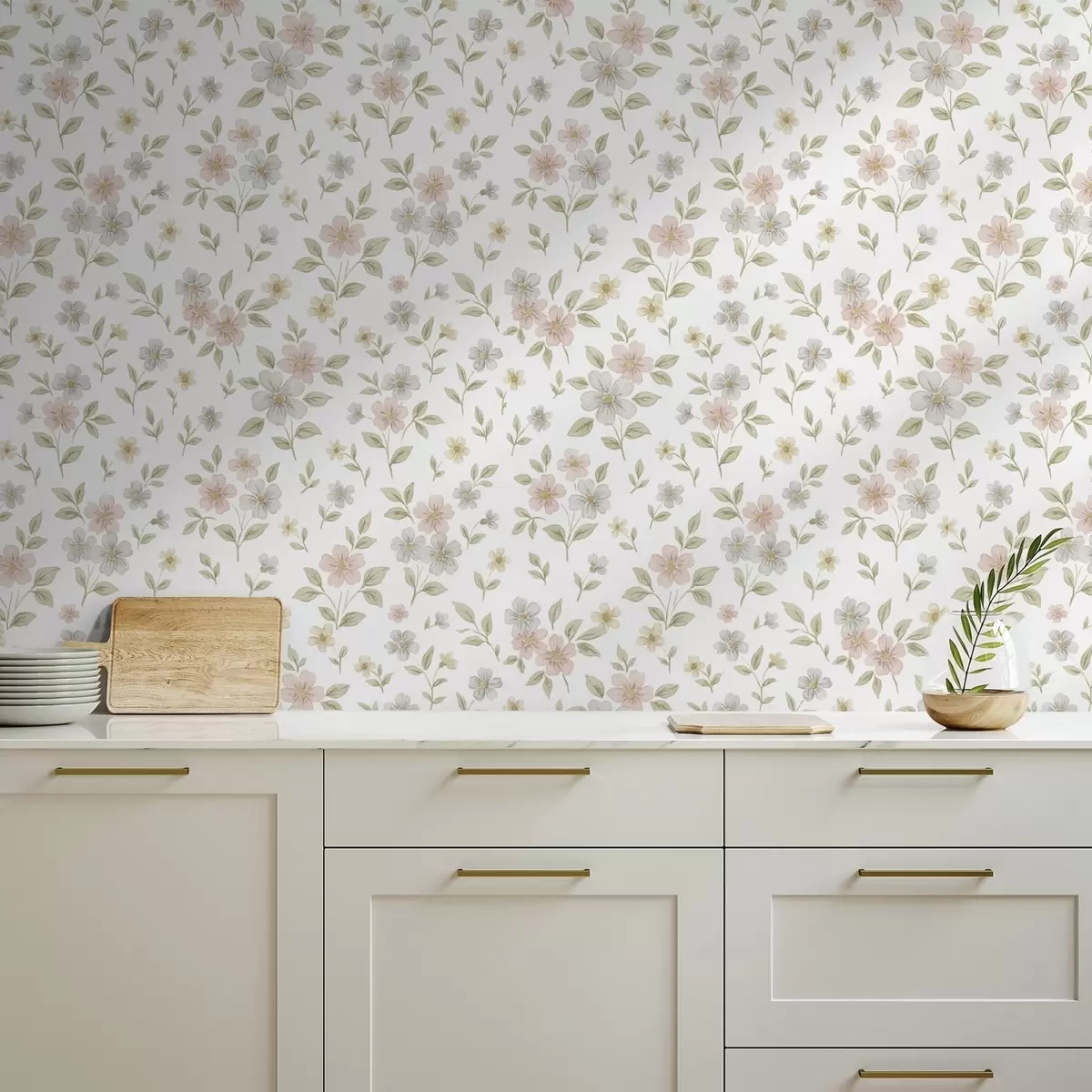 Тапет Малки акварелни цветя в пастелни тонове върху бял фон Nr. a00596v1