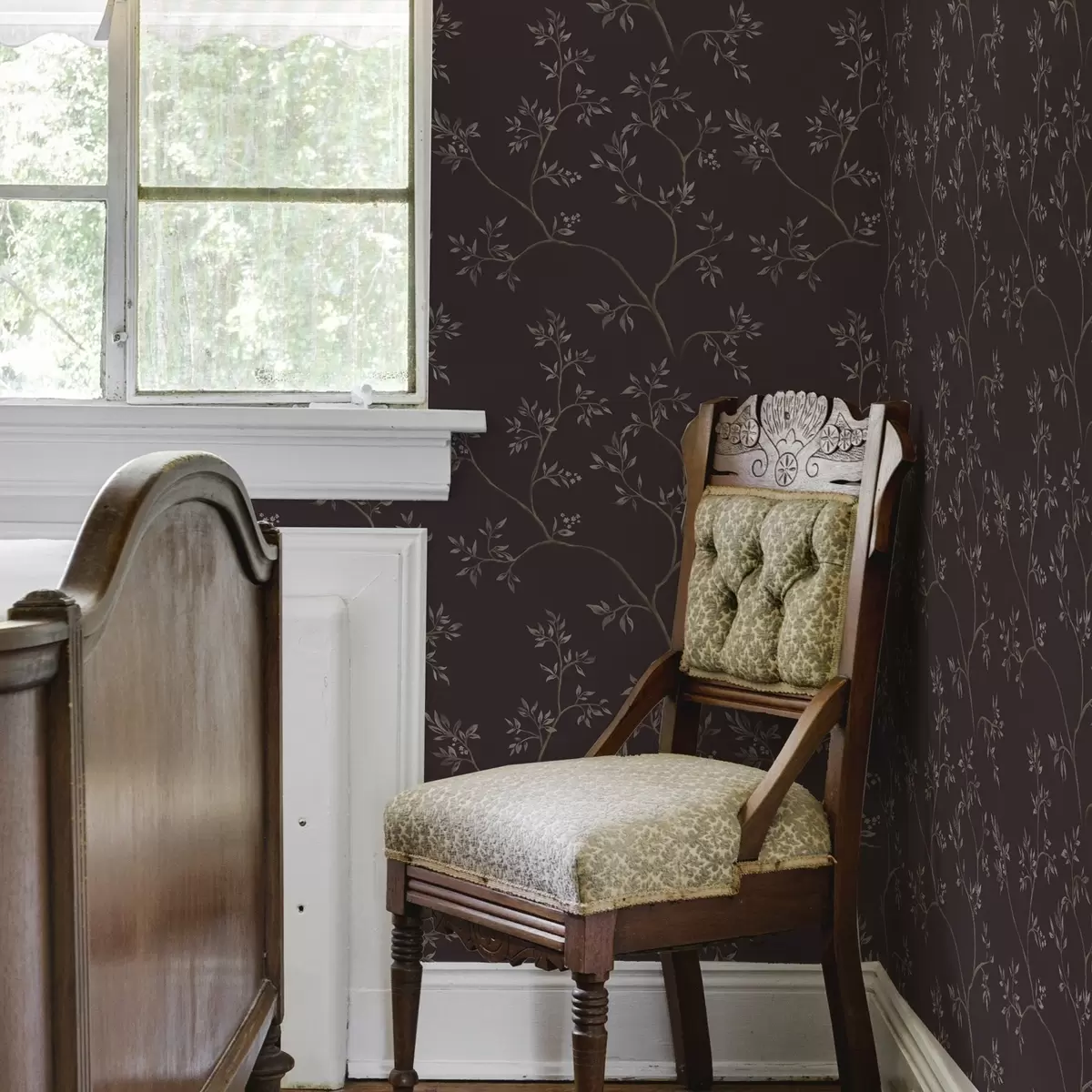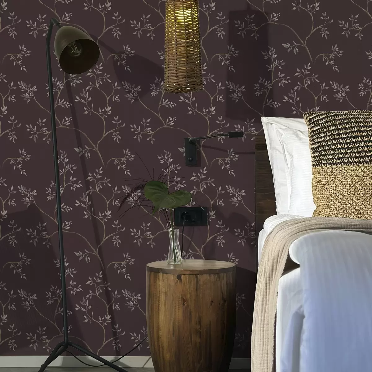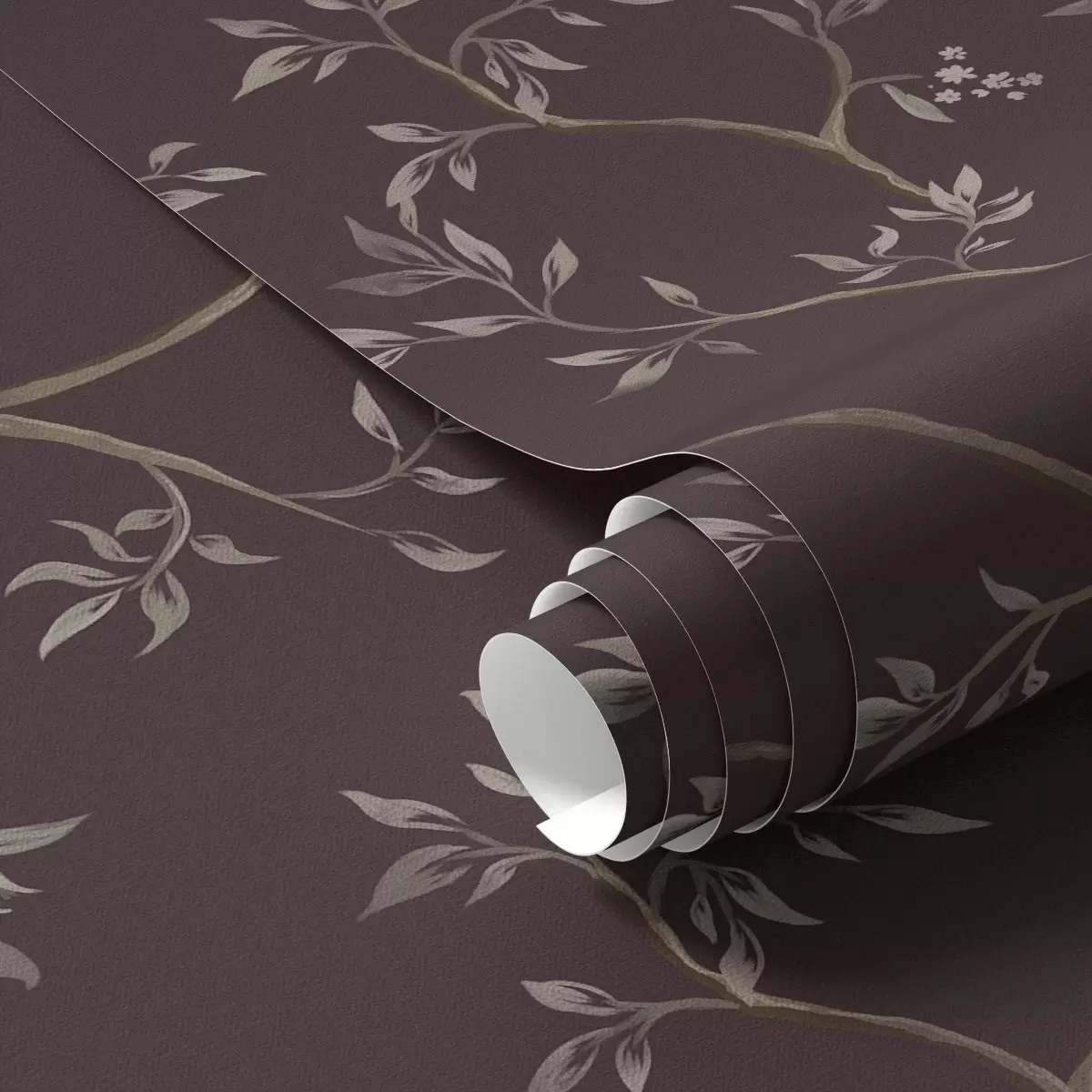 Тапет Деликатни листа на богат сливово-кафяв фон Nr. a00597v2