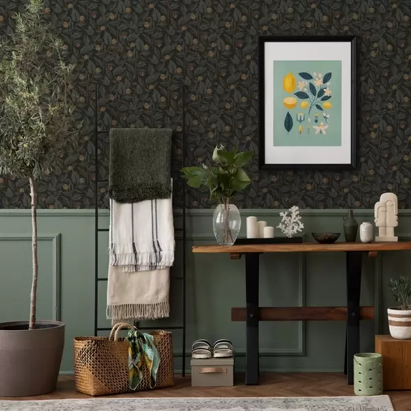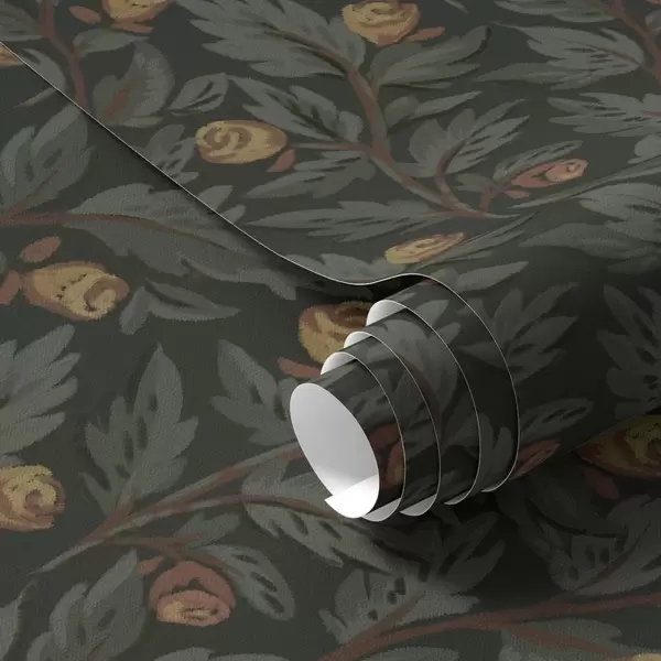 Тапет Тъмно флорален мотив с жълти пъпки и листа Nr. a00598