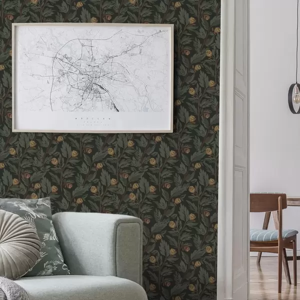 Тапет Тъмно флорален мотив с жълти пъпки и листа Nr. a00598