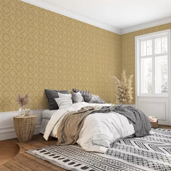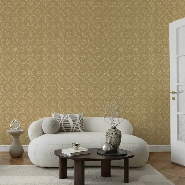 Тапет Бели венци от билки и цветя на горчичен фон Nr. a00599