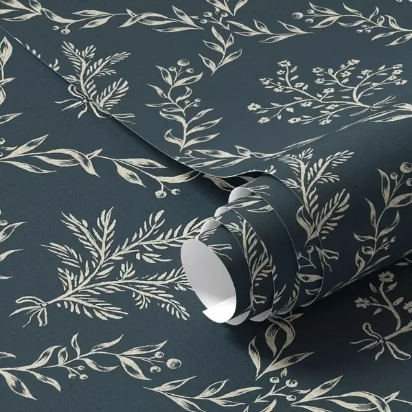 Тапет Бели венци от билки и цветя върху тъмно синьо-зелено Nr. a00599v2