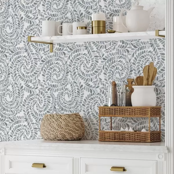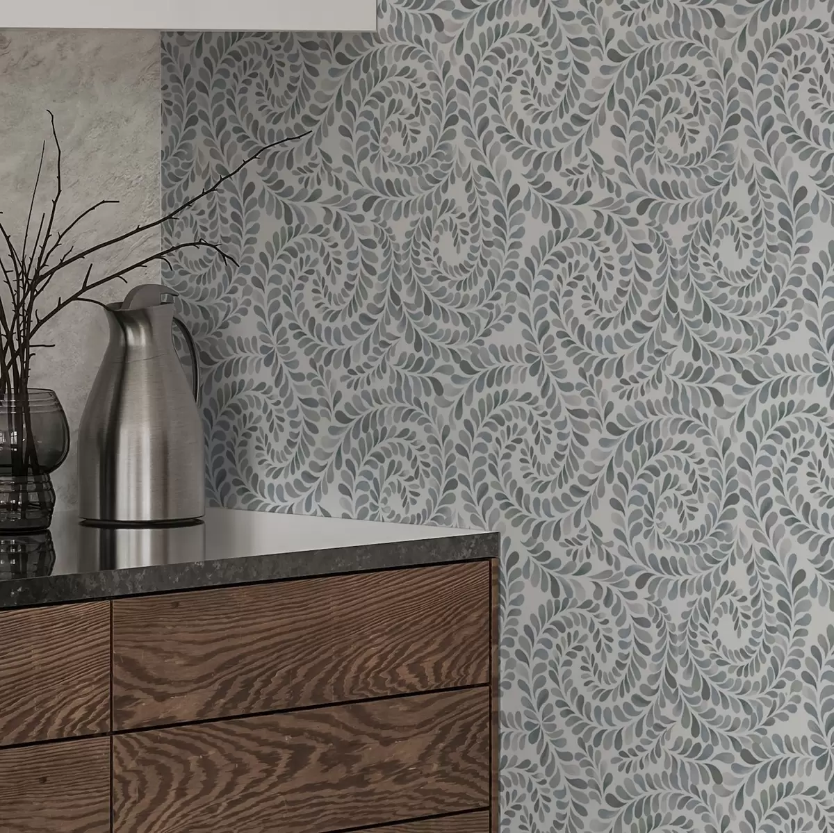Тапет Листни спирали в хладни сиво-сини тонове Nr. a00602v1