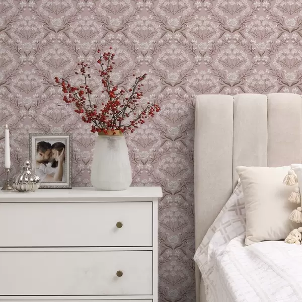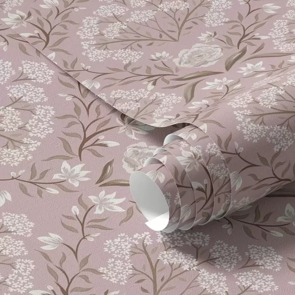 Тапет Розов дамаск: божури, кокичета и дантелени кичури Nr. a00603