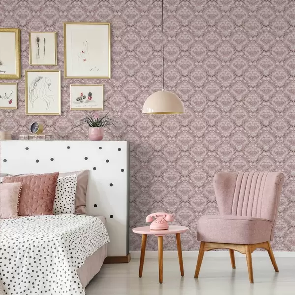 Тапет Розов дамаск: божури, кокичета и дантелени кичури Nr. a00603