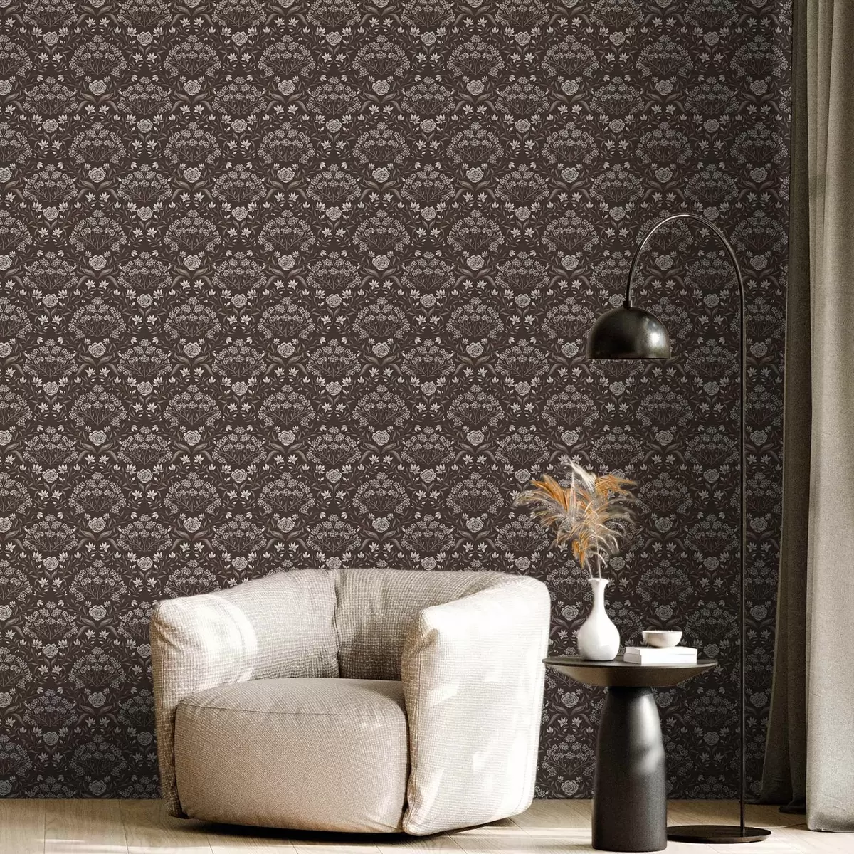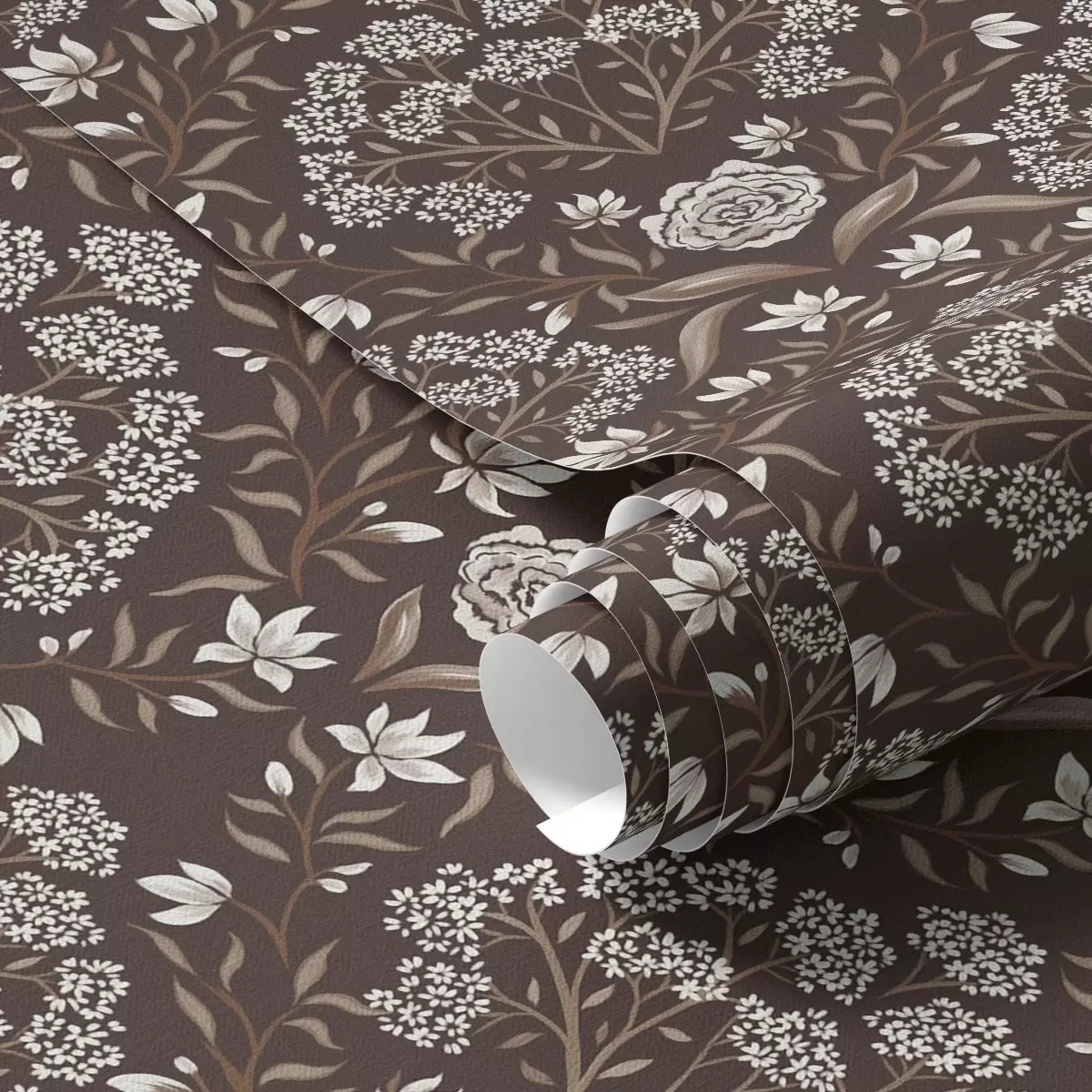 Тапет Тъмно шоколадово дамаско с божури и зюмбюли Nr. a00603v2