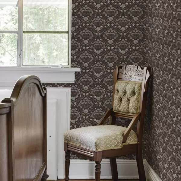 Тапет Тъмно шоколадово дамаско с божури и зюмбюли Nr. a00603v2