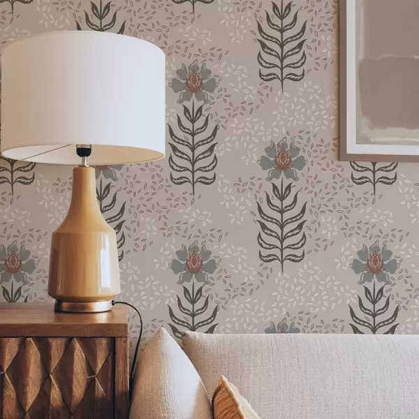 Тапет Стилизирани цветя и семена върху топло бежово Nr. a00604