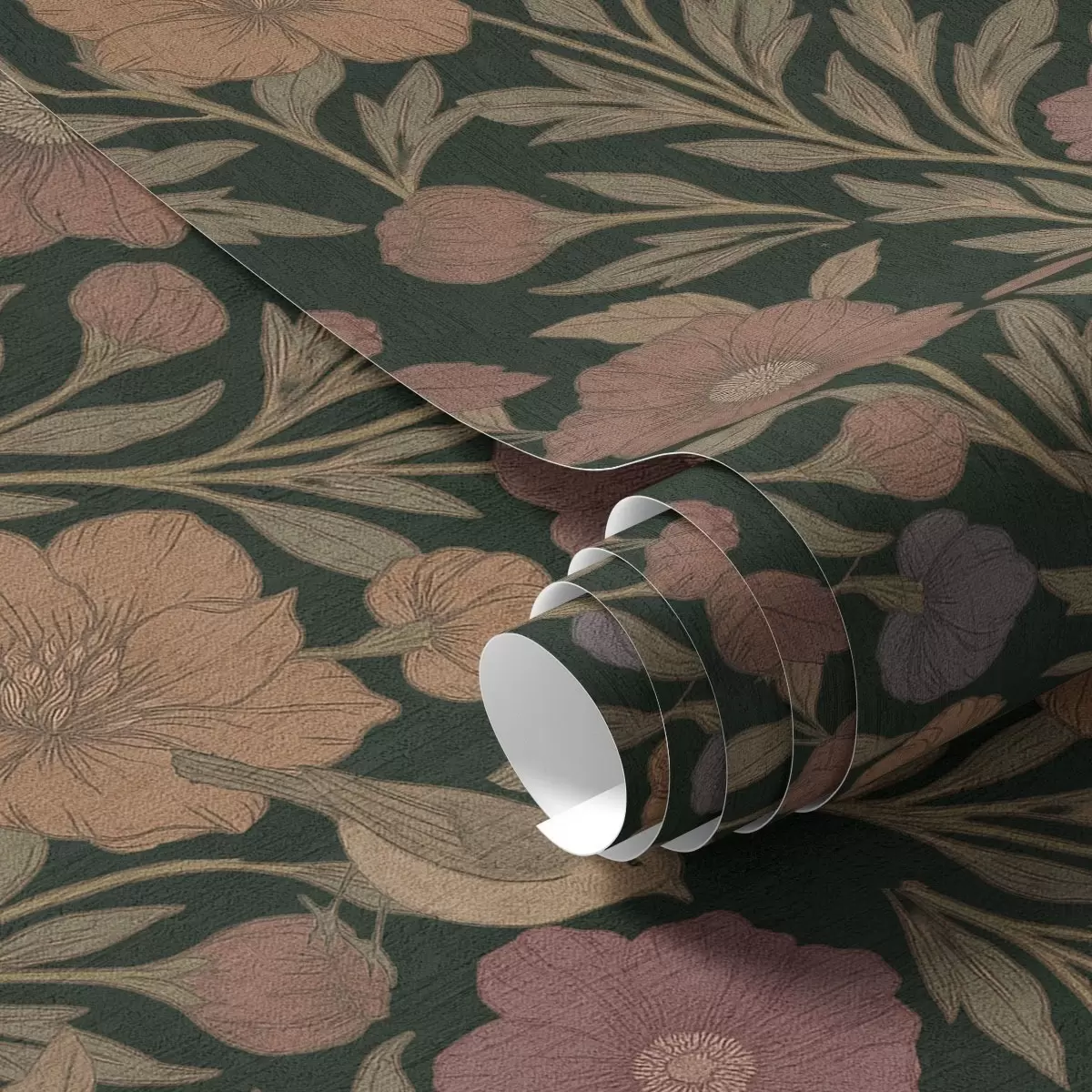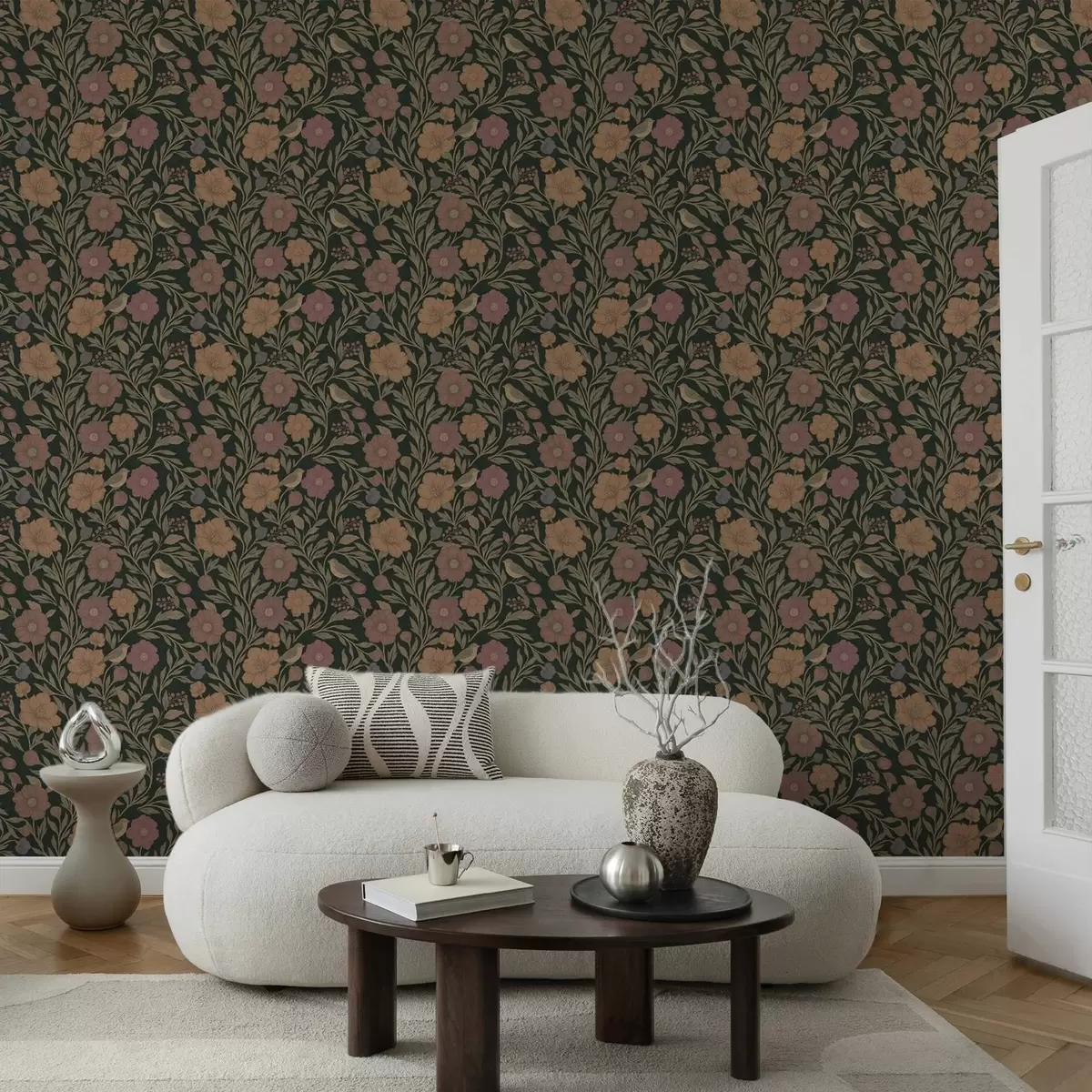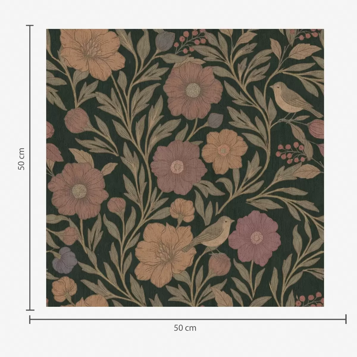 Тапет Есенни цветя и птици на тъмнозелен фон Nr. a00605v1