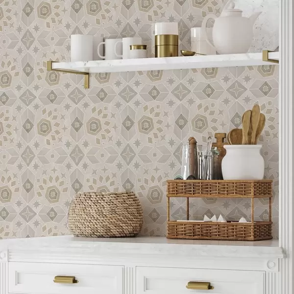 Тапет Геометричен мозаечен мотив в топли бежови нюанси Nr. a00606