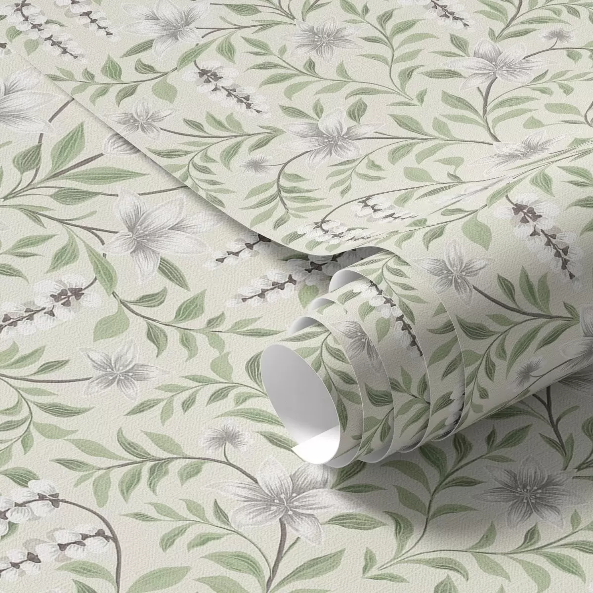 Тапет Лек лозов орнамент с бели цветя, симетричен Nr. a00609