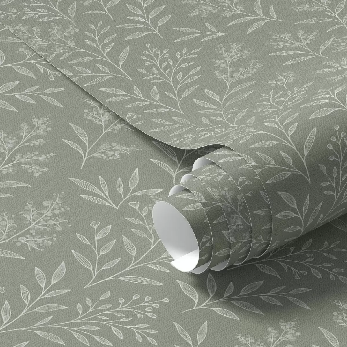 Тапет Зелен градински чай: фини билки и съцветия, деликатен мотив Nr. a00611