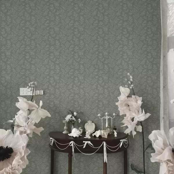 Тапет Зелен градински чай: фини билки и съцветия, деликатен мотив Nr. a00611