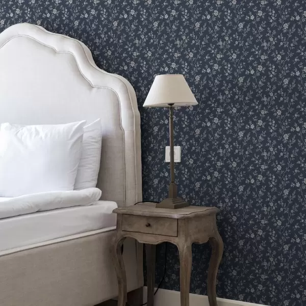 Тапет Тъмно син фон с тънки бежови клонки и цветя Nr. a00612