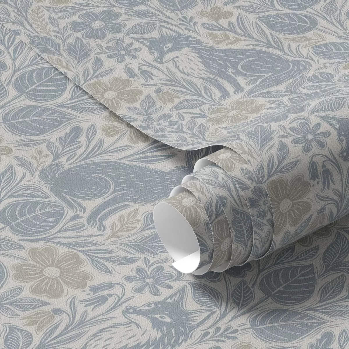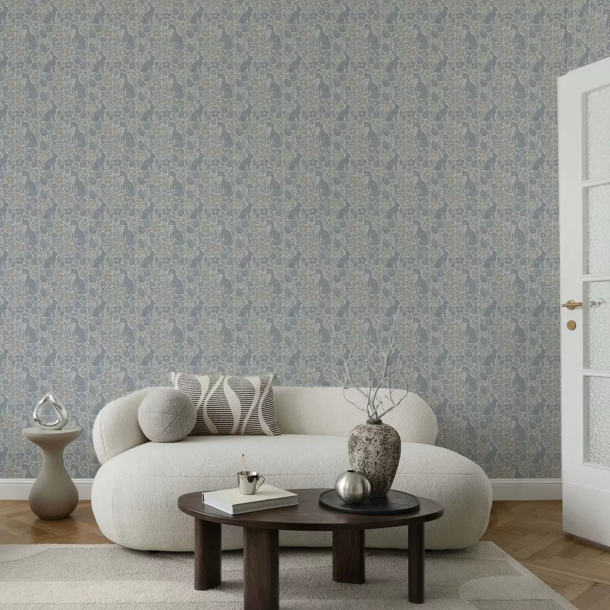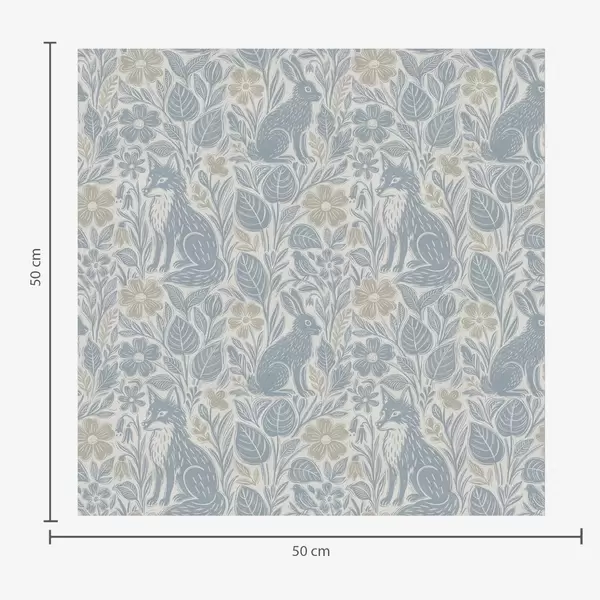 Тапет Горски животни и цветя: лисица и заек в сини тонове Nr. a00613