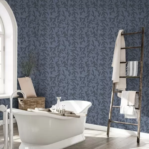 Тапет Графитно-син фон и сини листа, текстуриран щрих Nr. a00616v2
