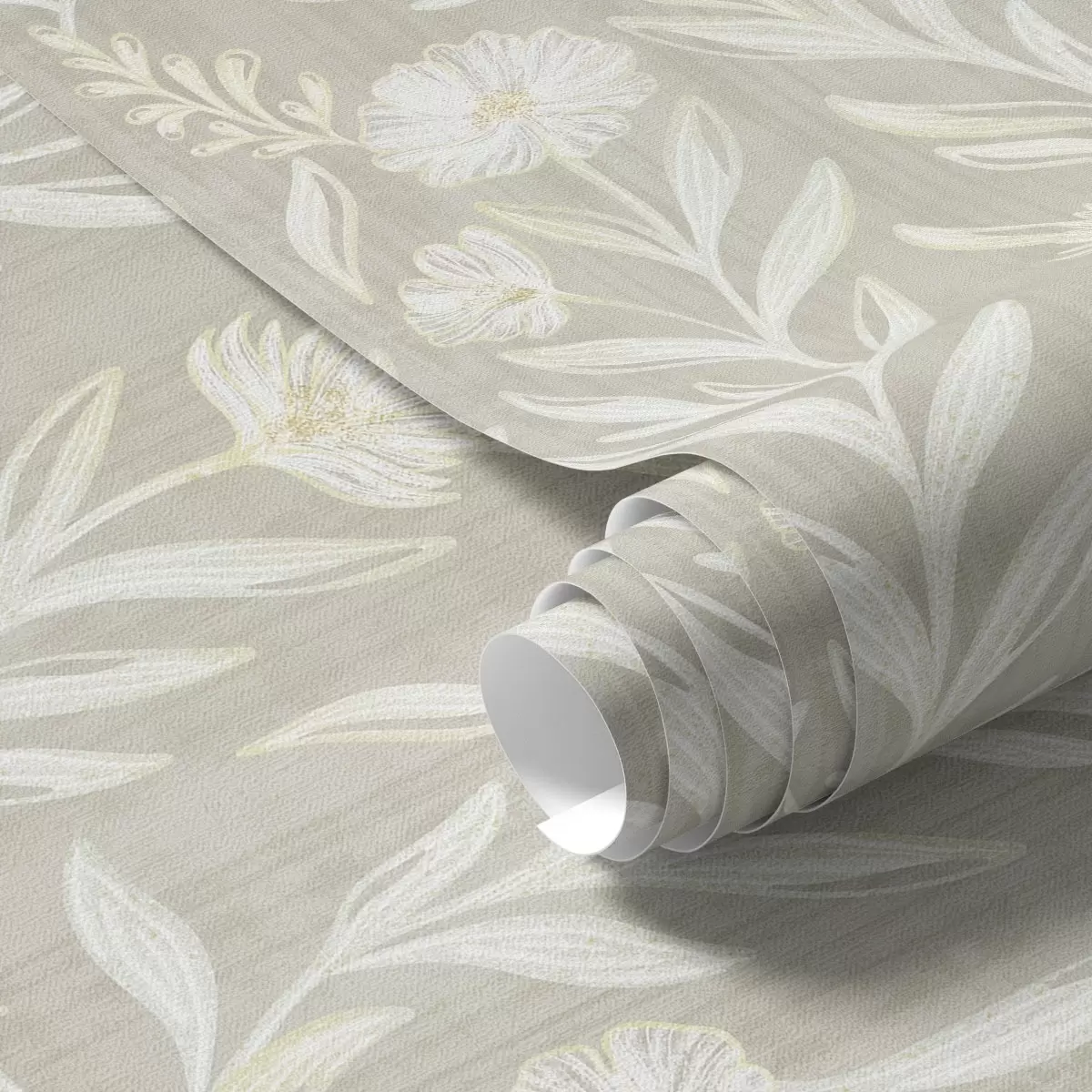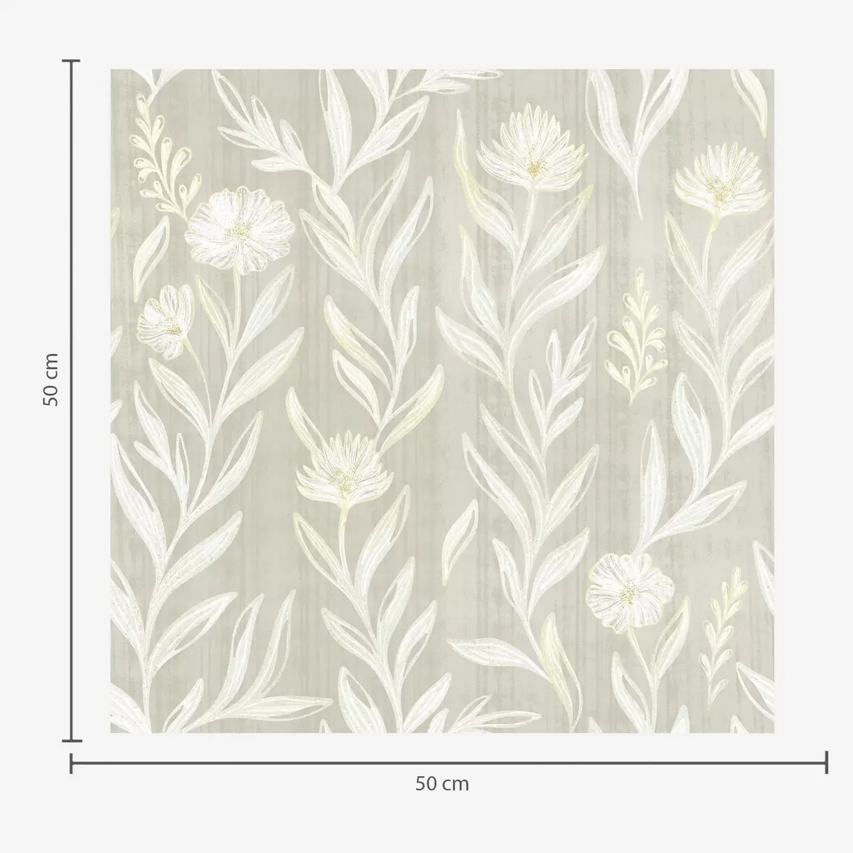 Тапет Светли треви и цветя върху бежови, схематични линии Nr. a00618
