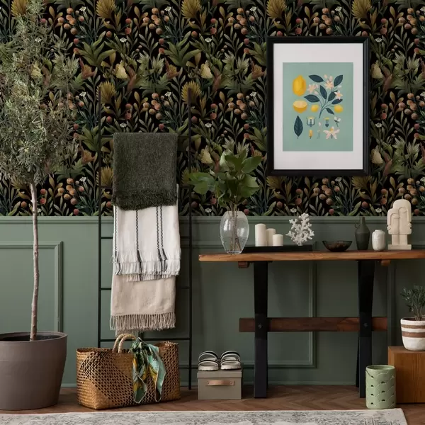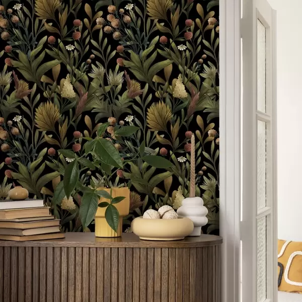 Тапет Ботаническа градина на черен фон, топла есенна палитра Nr. a00619