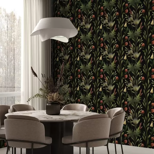 Тапет Високи треви и цветя върху черен, детайлен принт Nr. a00620