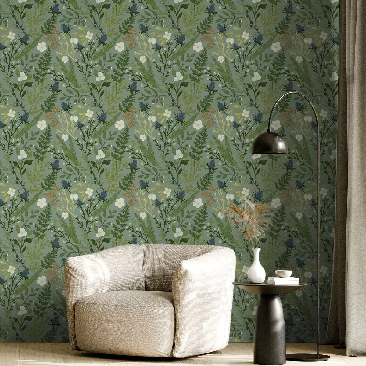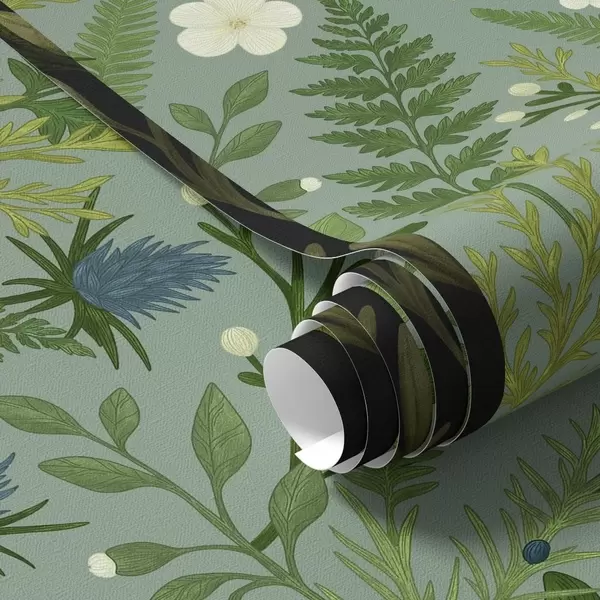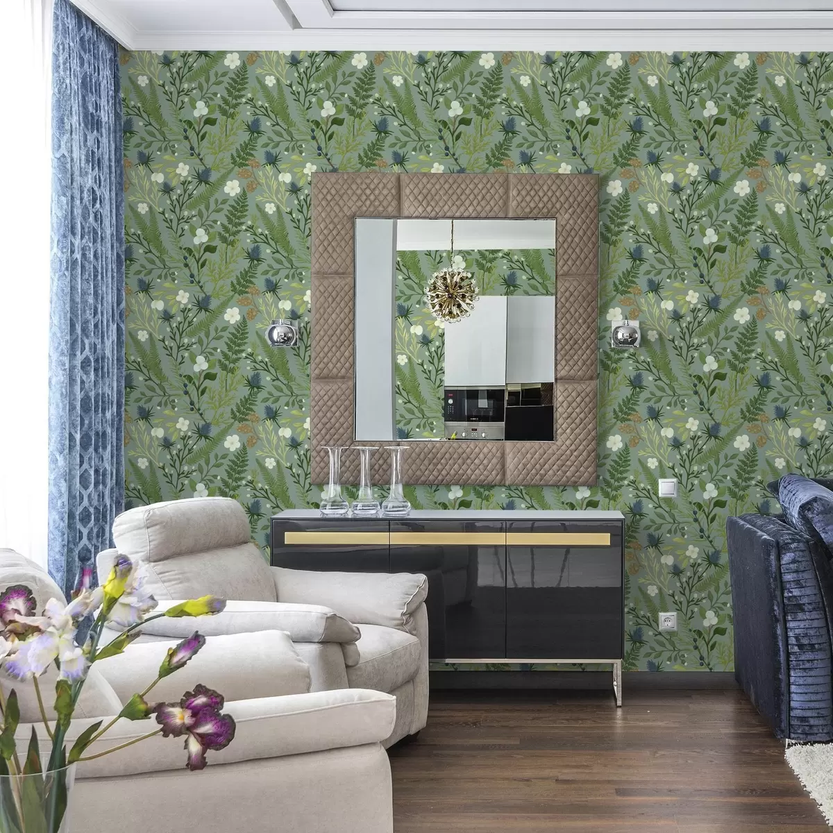 Тапет Горски билки, цикория и горски плодове на ментов фон Nr. a00621v1