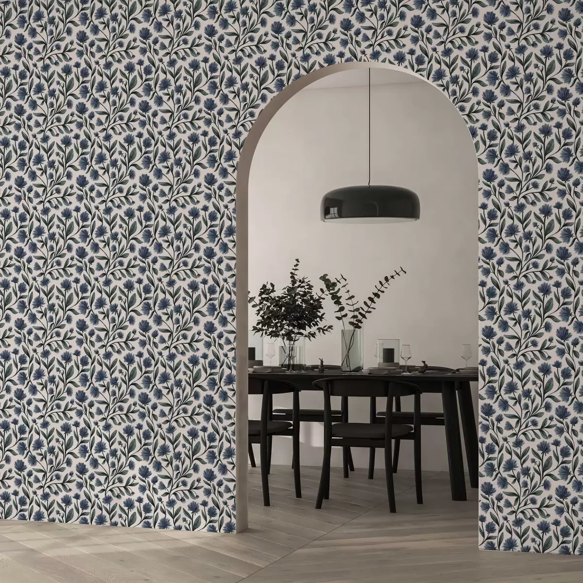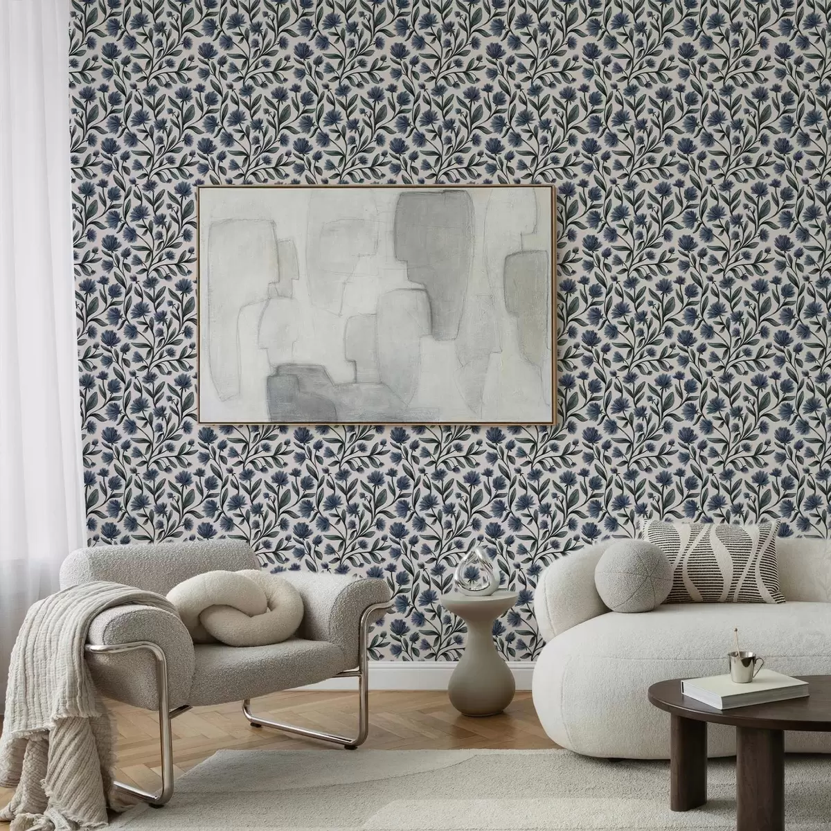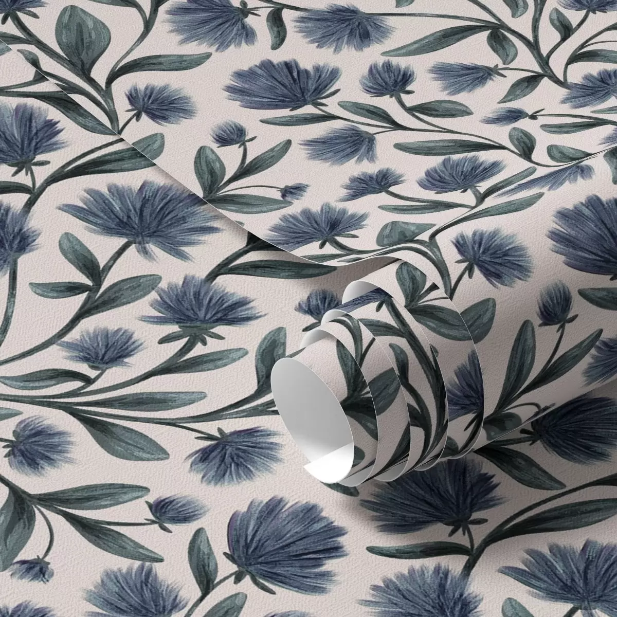 Тапет Диви цветя в синьо-зелена палитра на кремав фон Nr. a00623v2