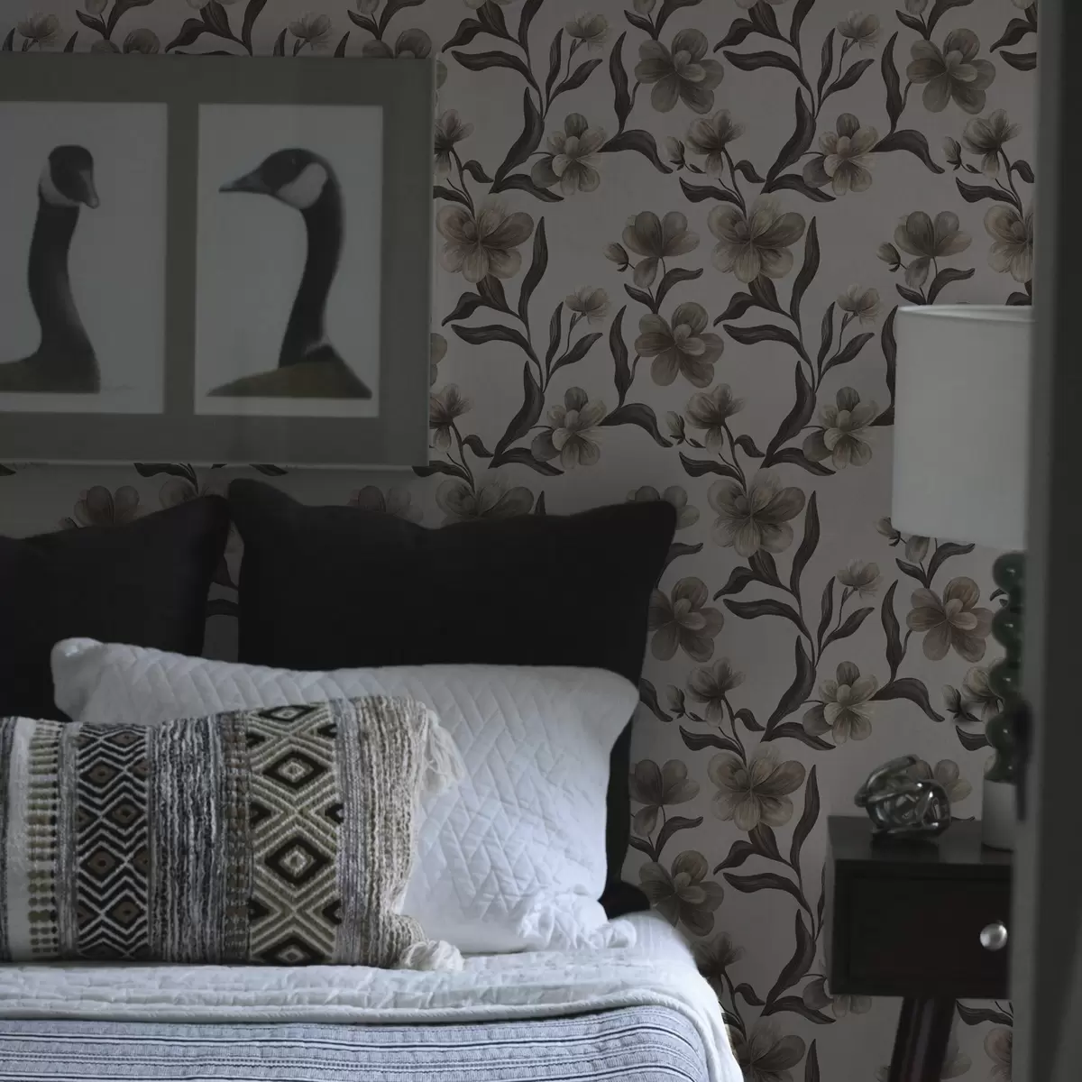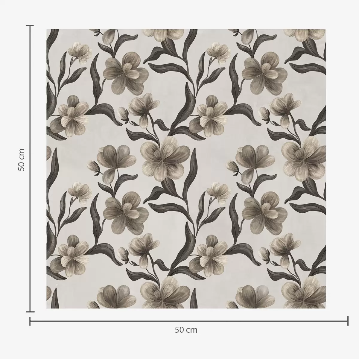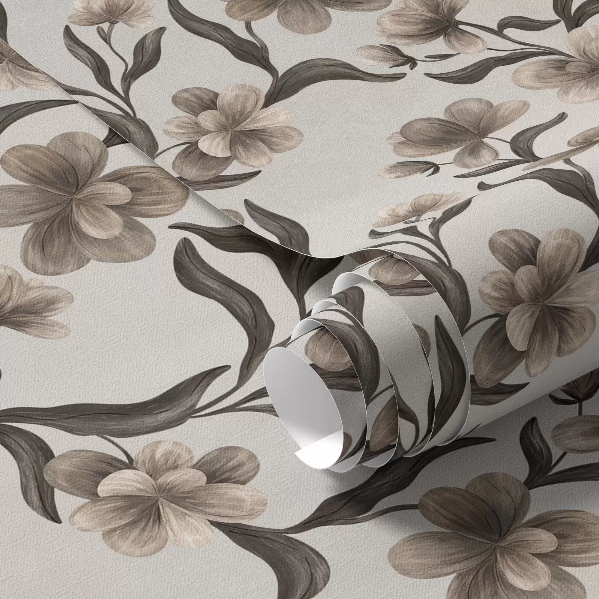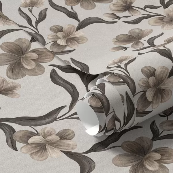 Тапет Бежови цветя и тъмни клони на светлосив фон Nr. a00626v1