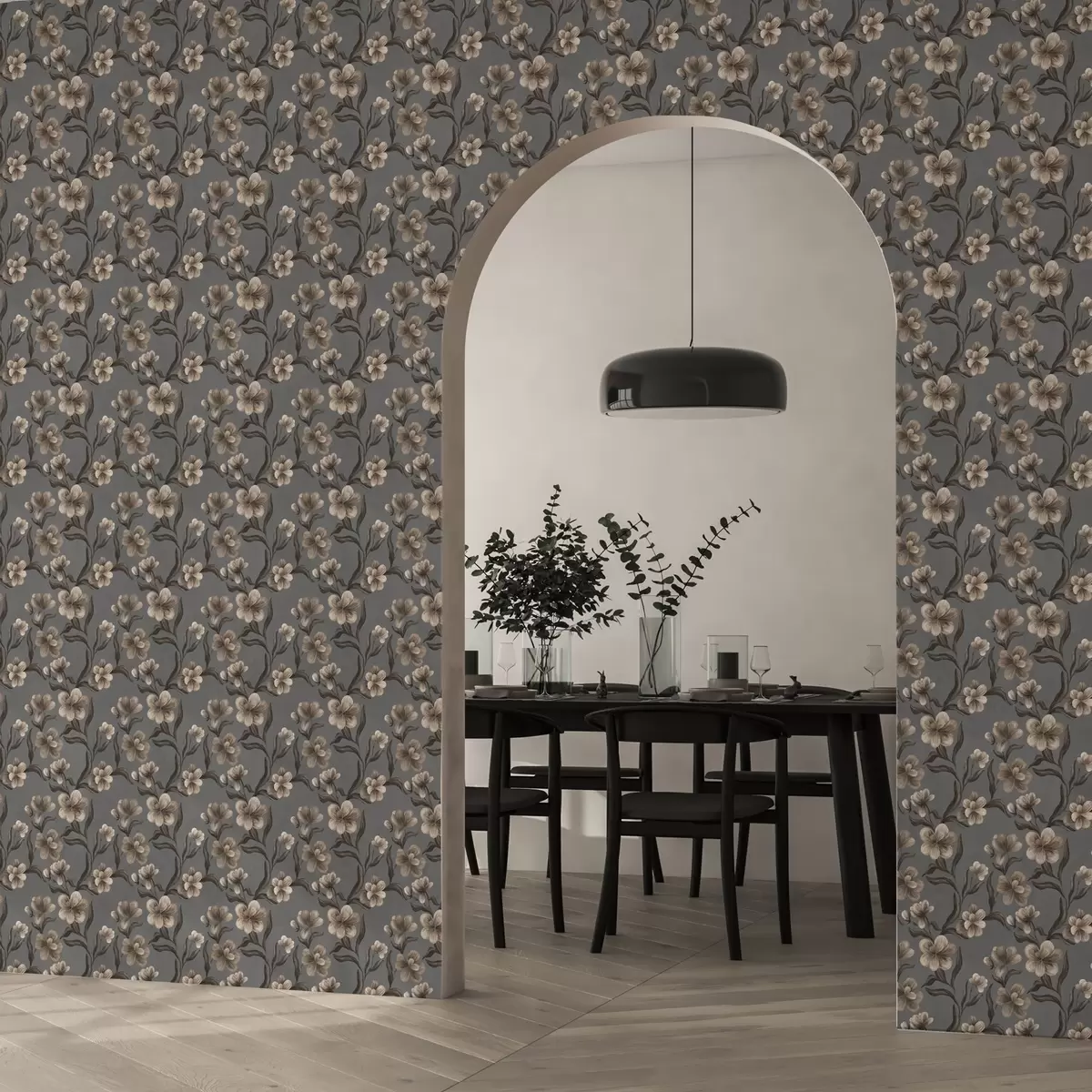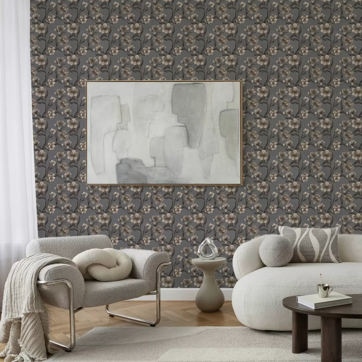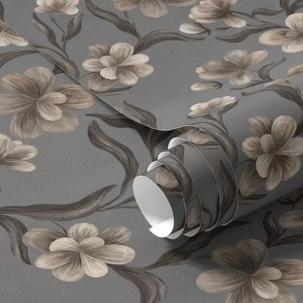 Тапет Бежови цветя на графитно-сив фон Nr. a00626v4