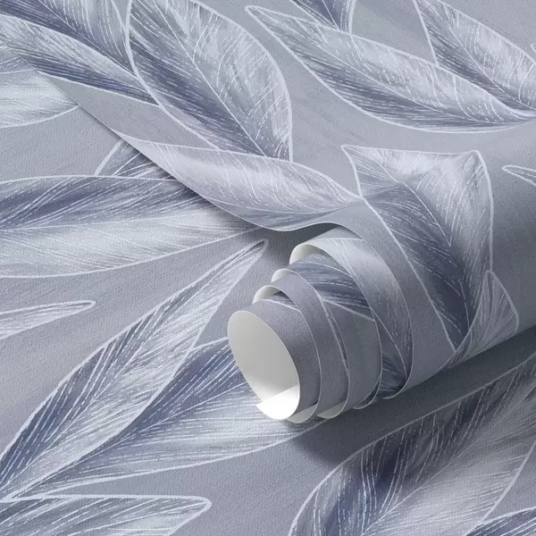 Тапет Сребристо-сини листа на сиво-син фон, графичен мотив Nr. a00627