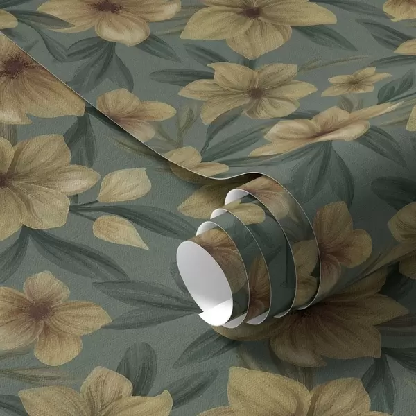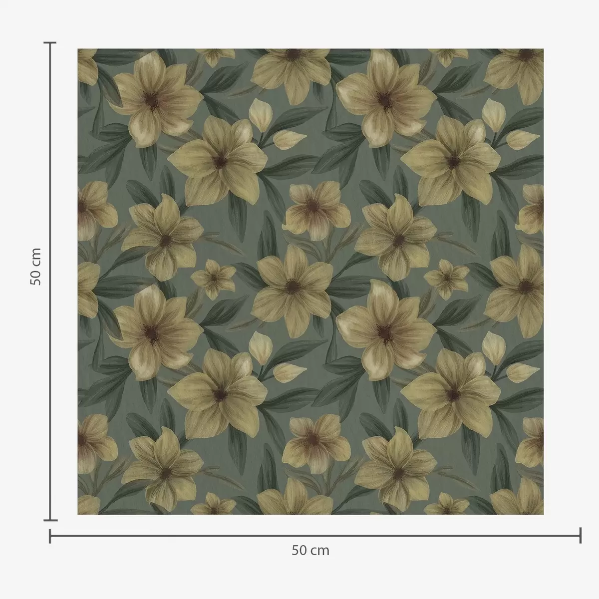 Тапет Охрени цветя на тъмнозелен фон, гъст мотив Nr. a00628