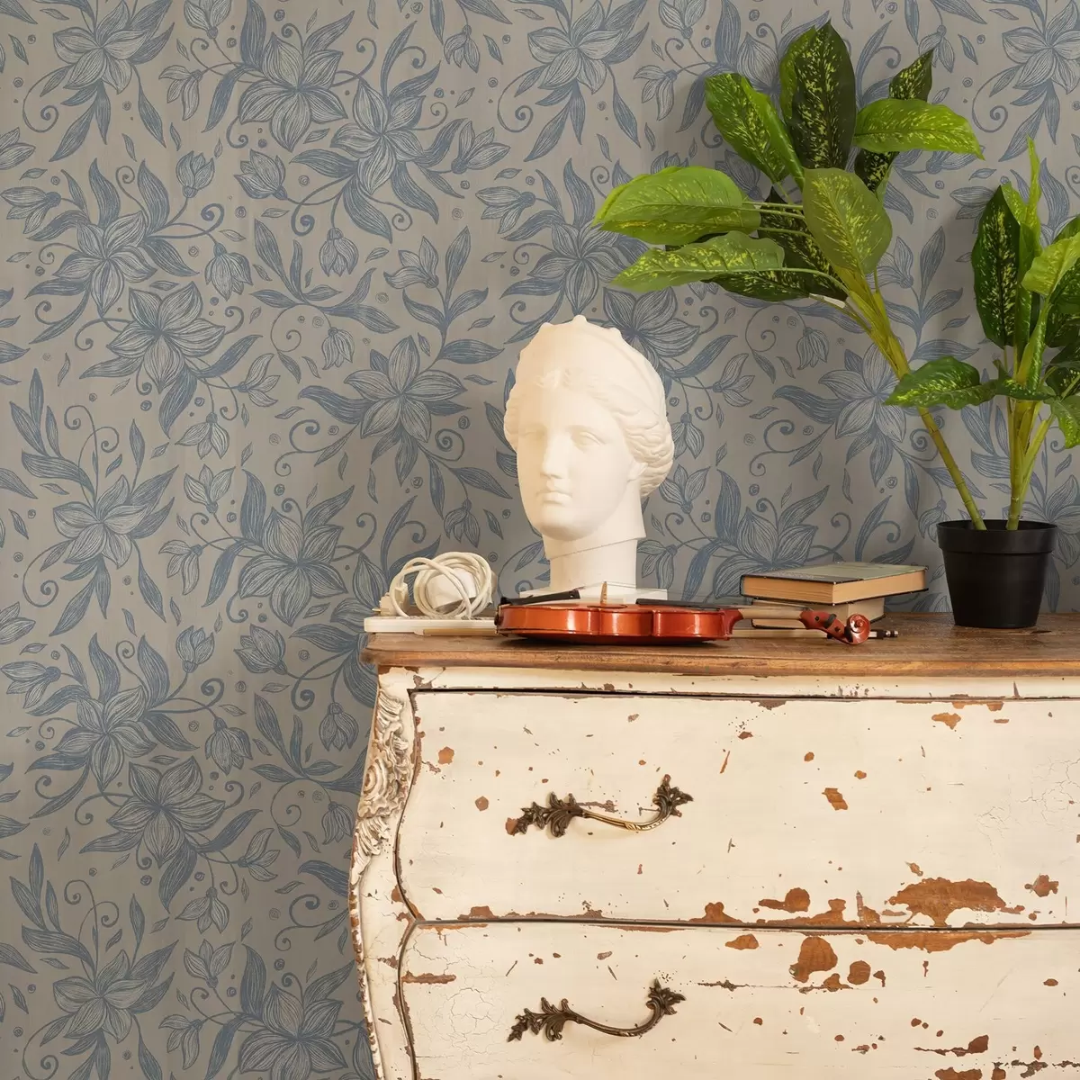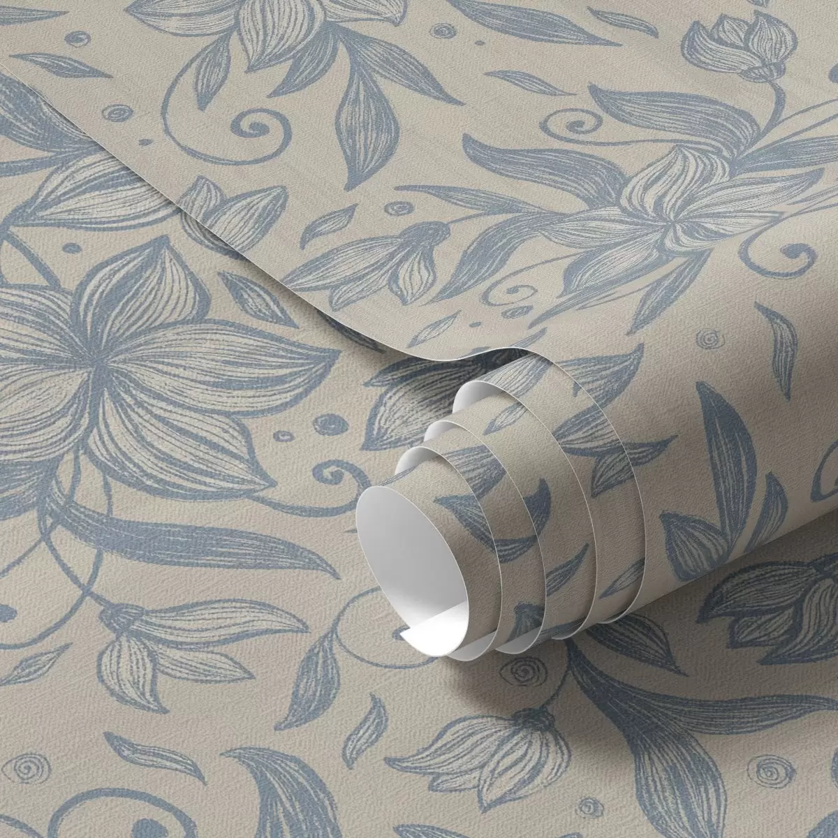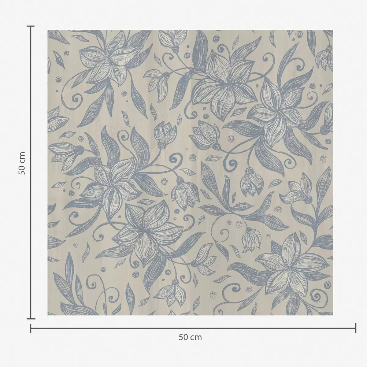 Тапет Синьо линейно флорално мотив върху топло бежово Nr. a00630v2