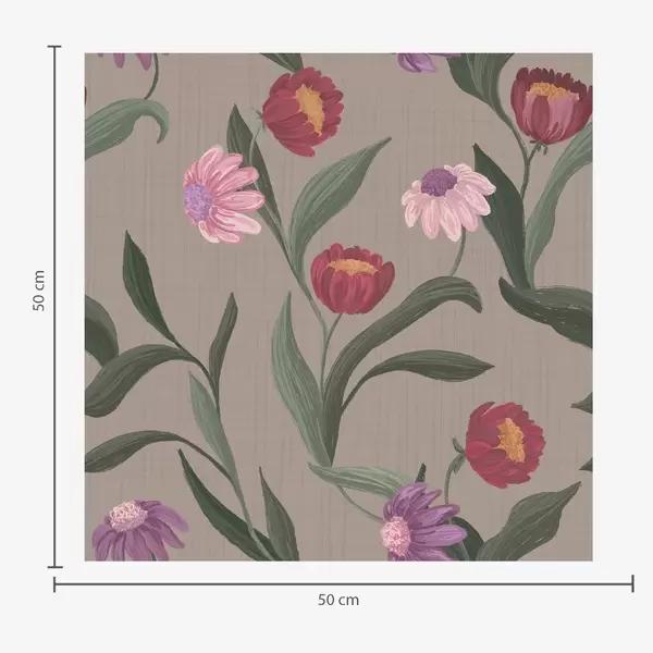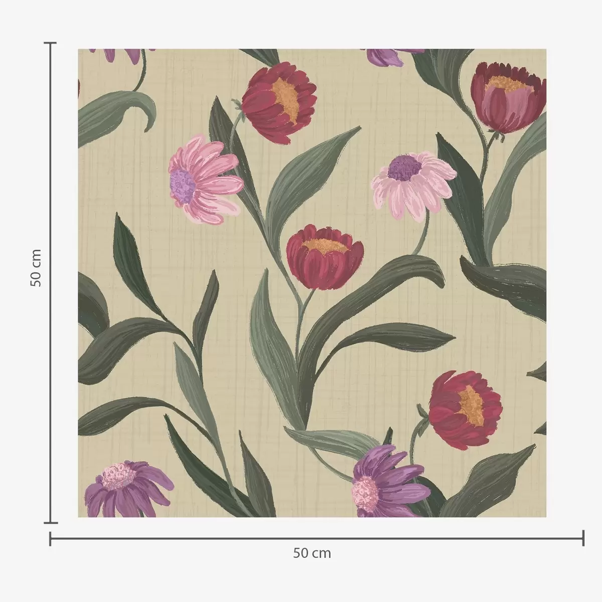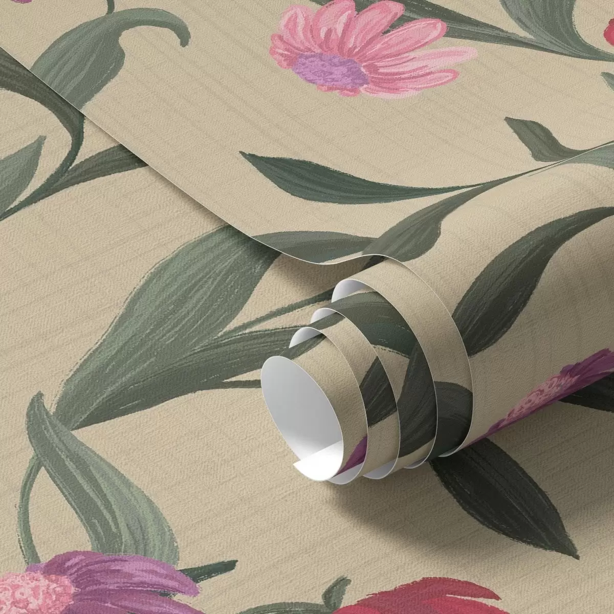 Тапет Розово-червени цветя на бежов фон, ръчно рисувана текстура Nr. a00631