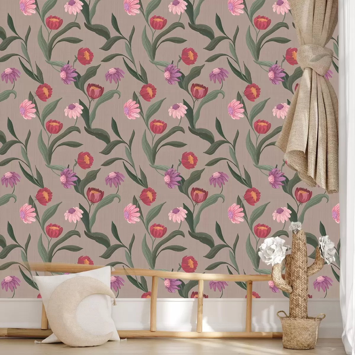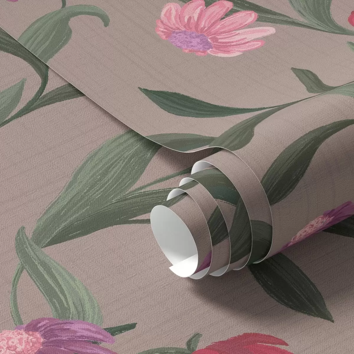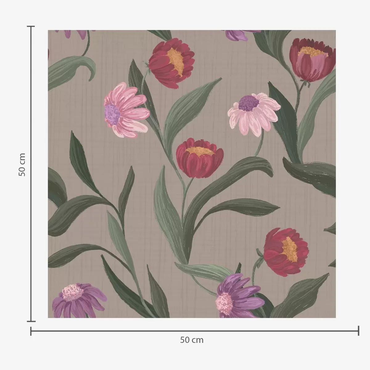 Тапет Розово-червени цветя на сиво-кафяв фон, дълги стъбла Nr. a00631v2