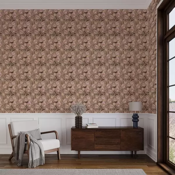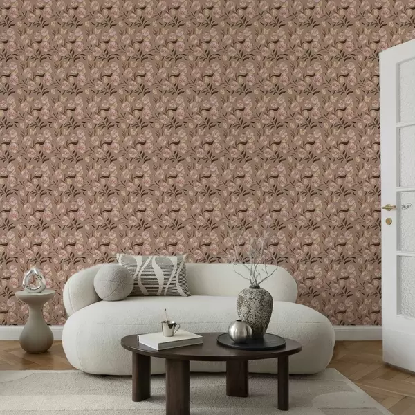 Тапет Розови цветя и пеперуди на топъл кафяв фон Nr. a00633v1
